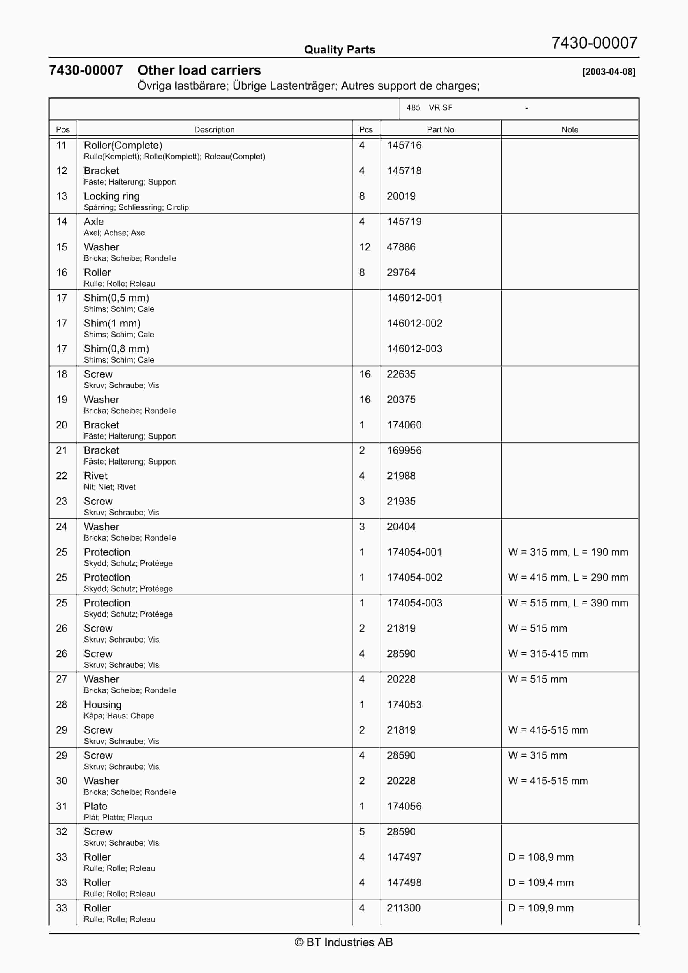 - 63. Fork/support arm wheels 2003-12-09
