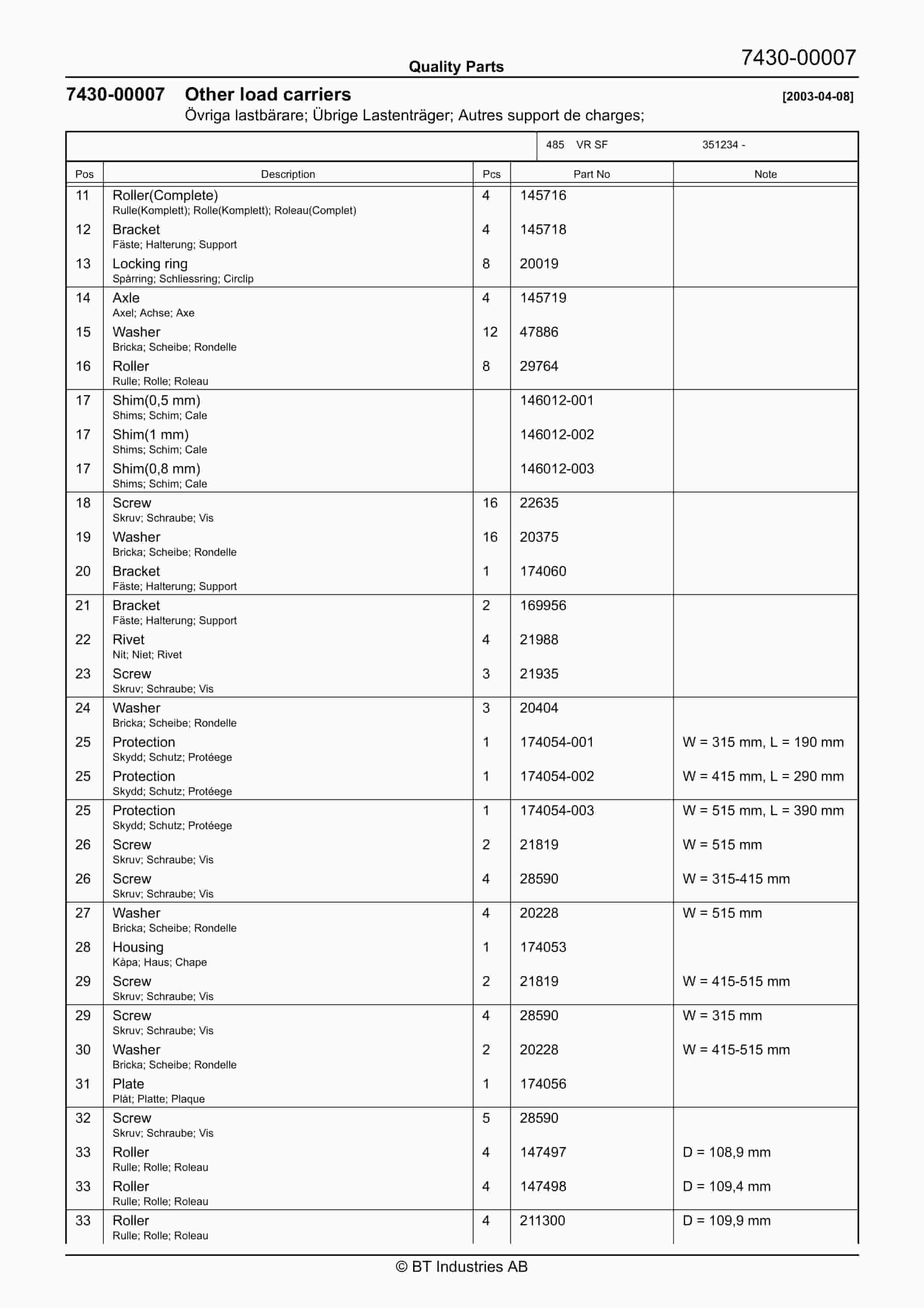 - 65. Fork/support arm wheels 2003-12-09