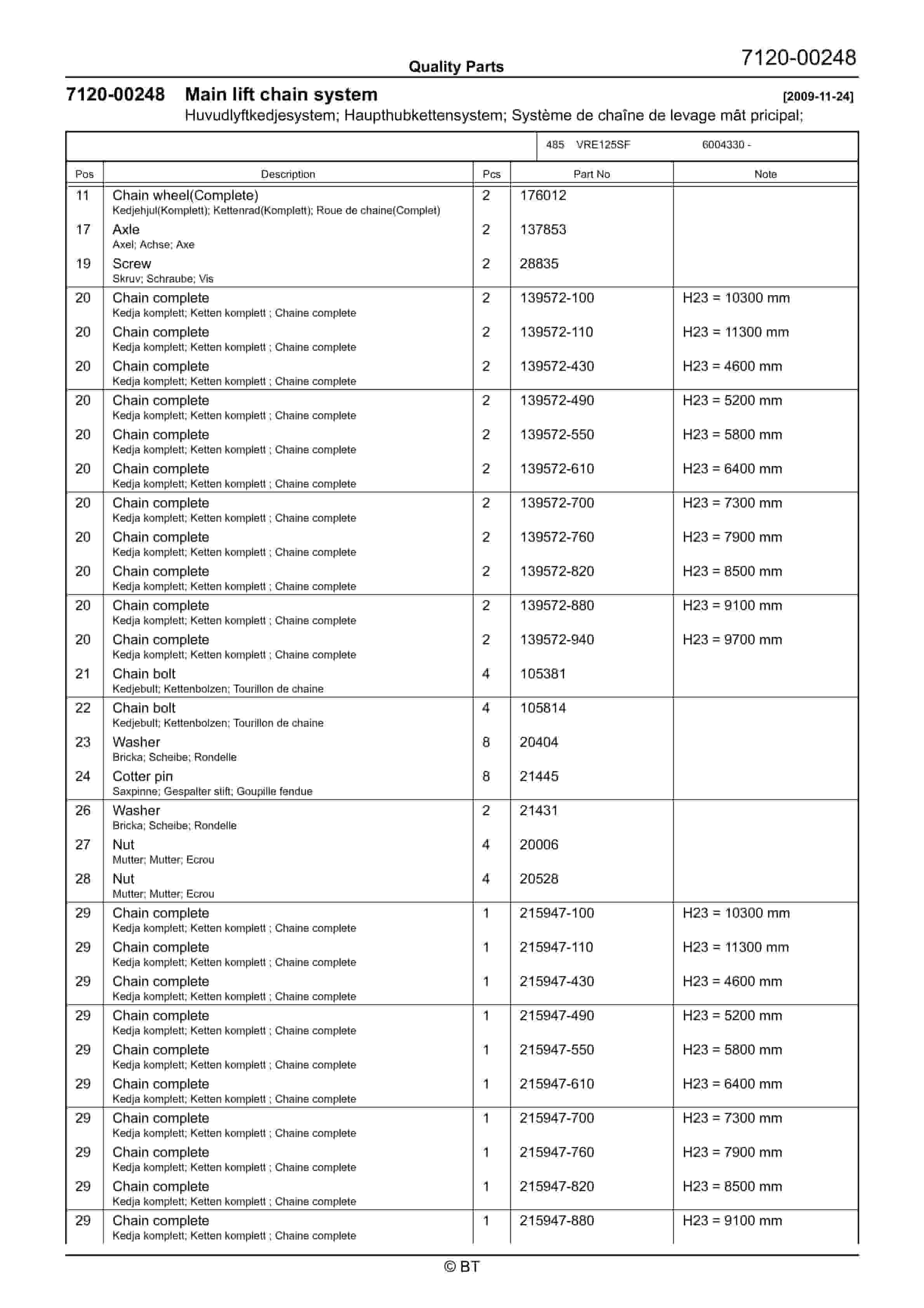 BT CARGO C3E 100R, C3E 130R, C3E 150R Spare Parts Catalog 0350190R1