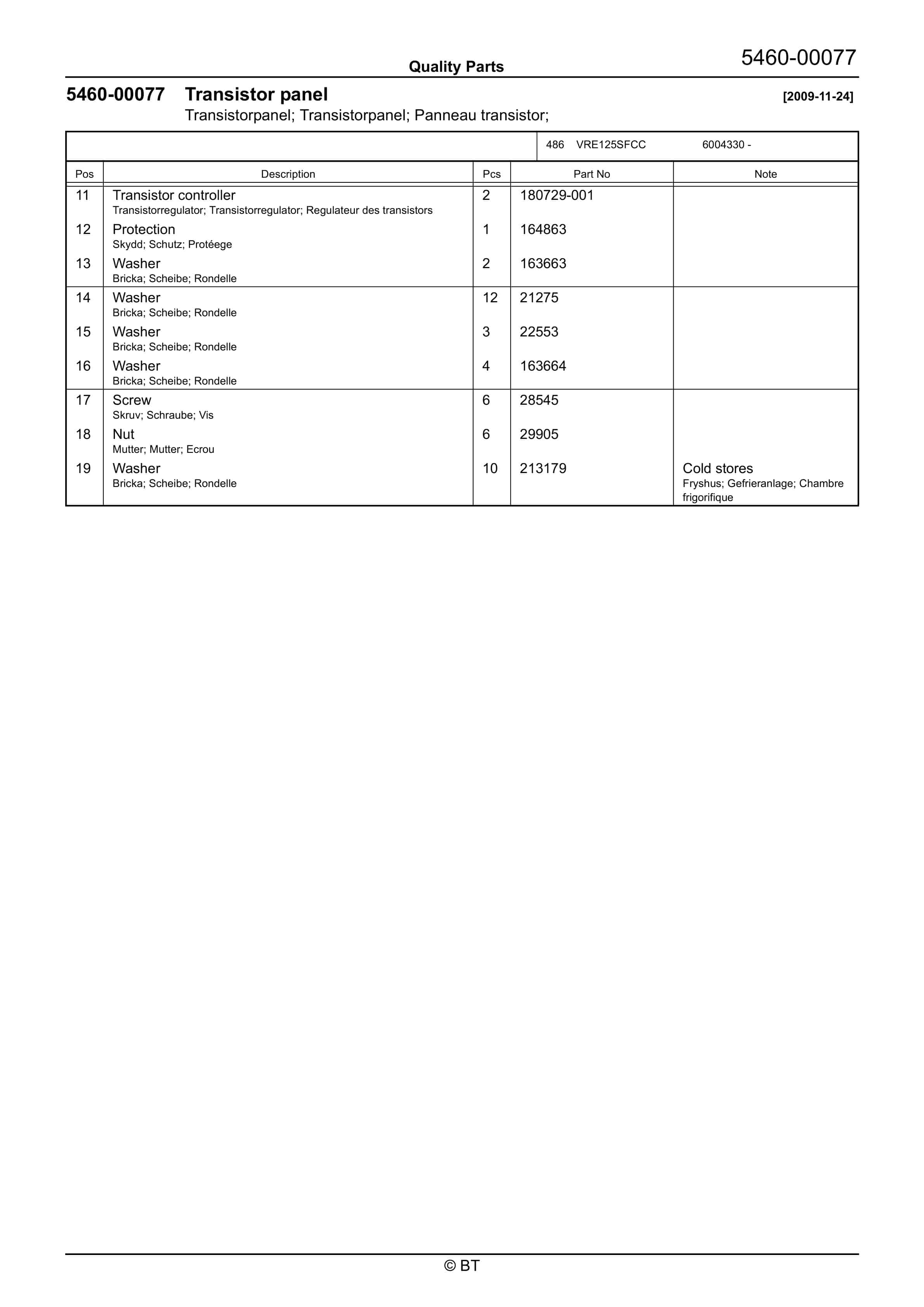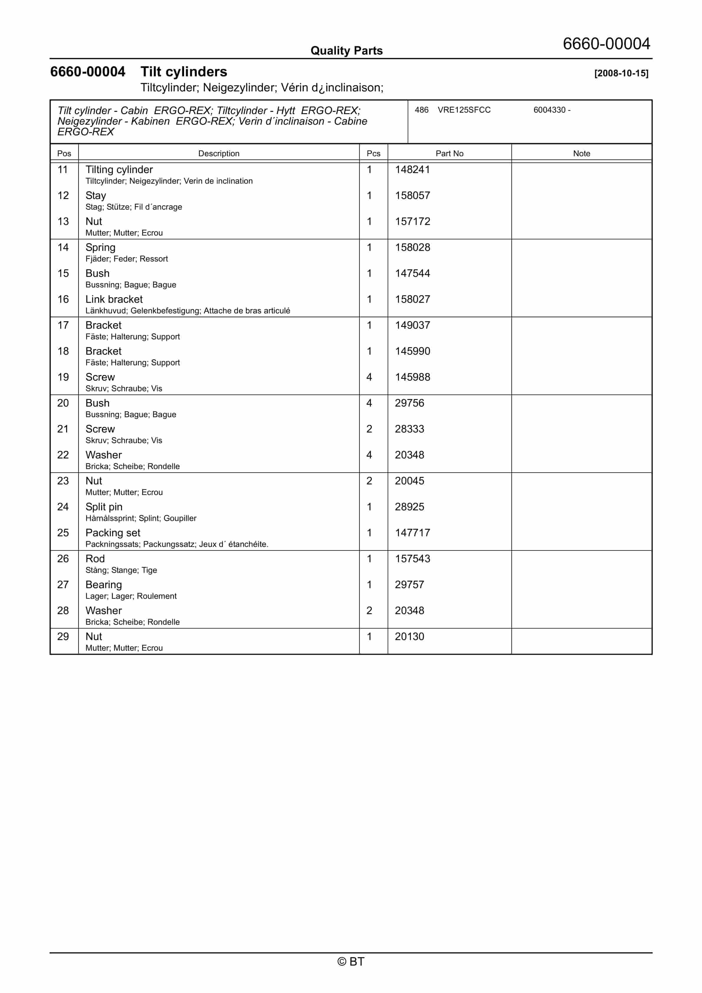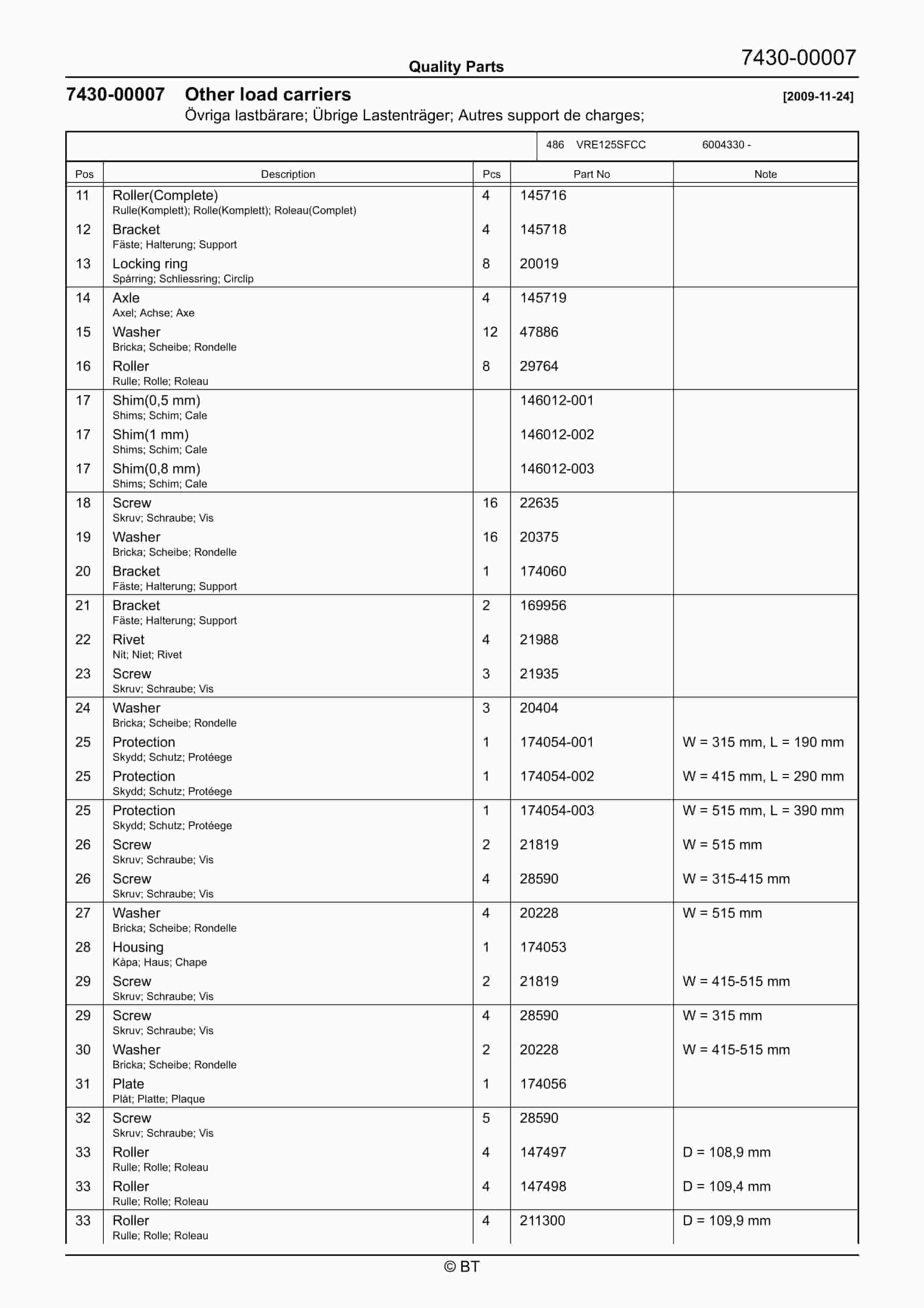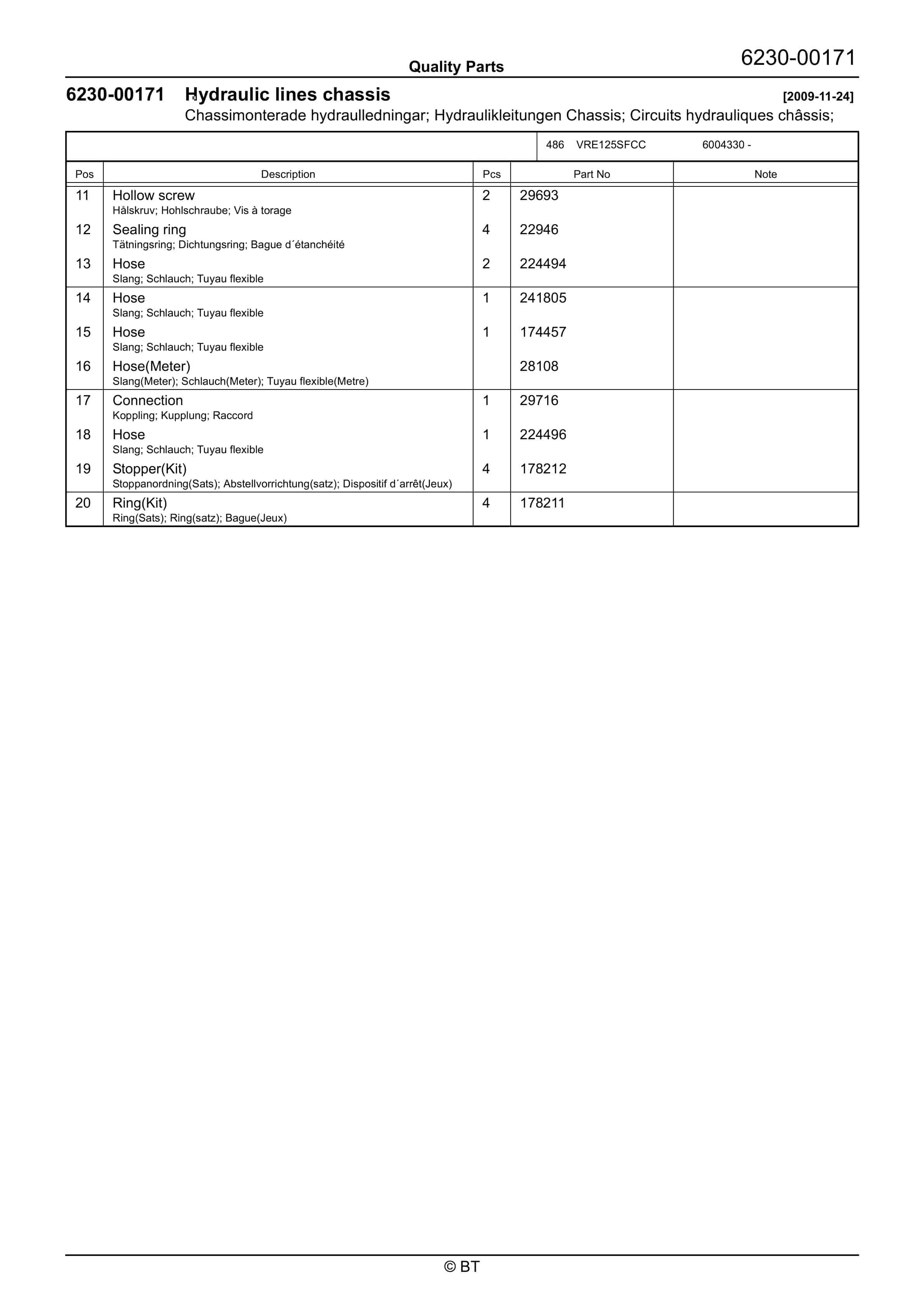BT VRE125SFCC Quality Parts 7520690