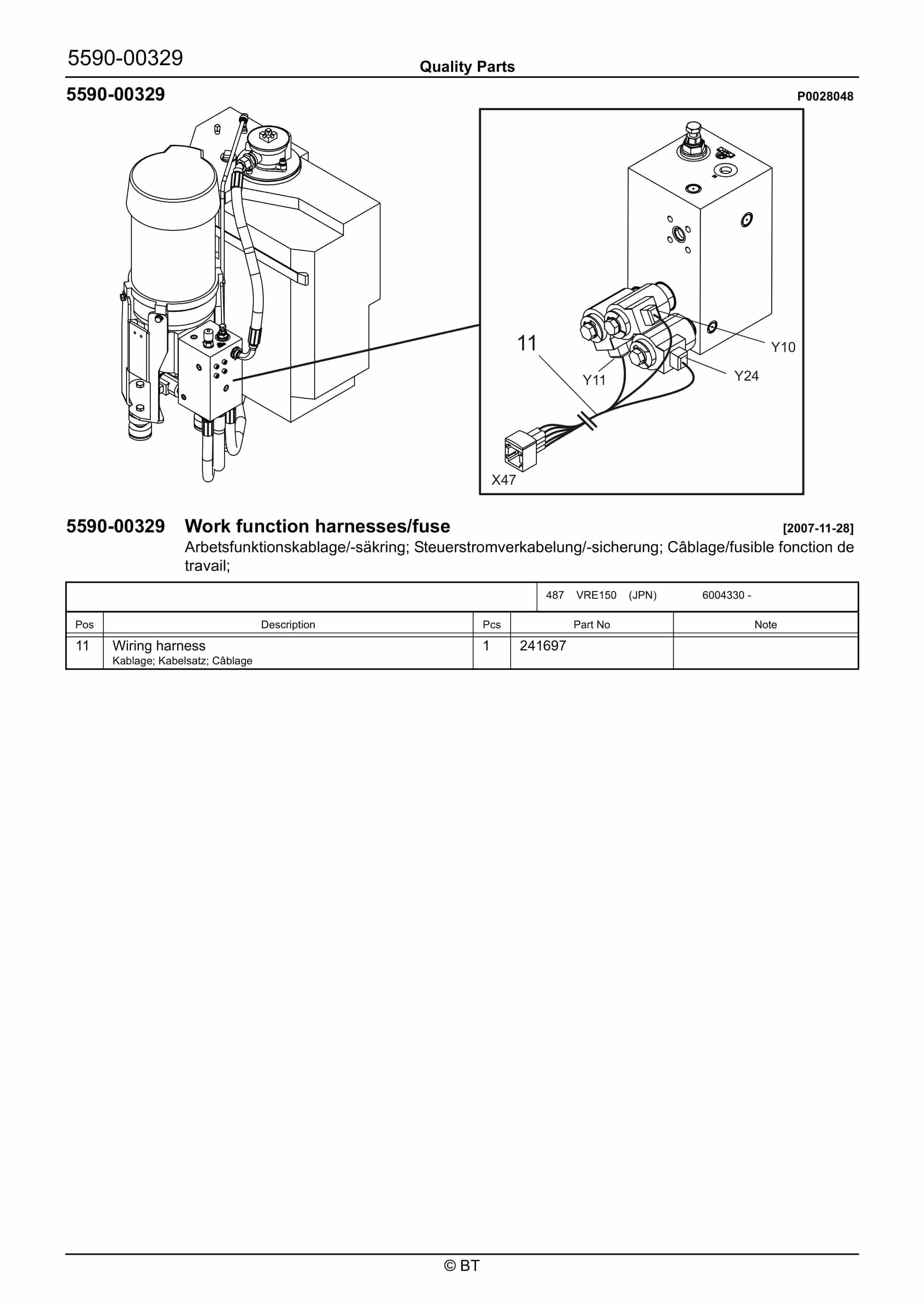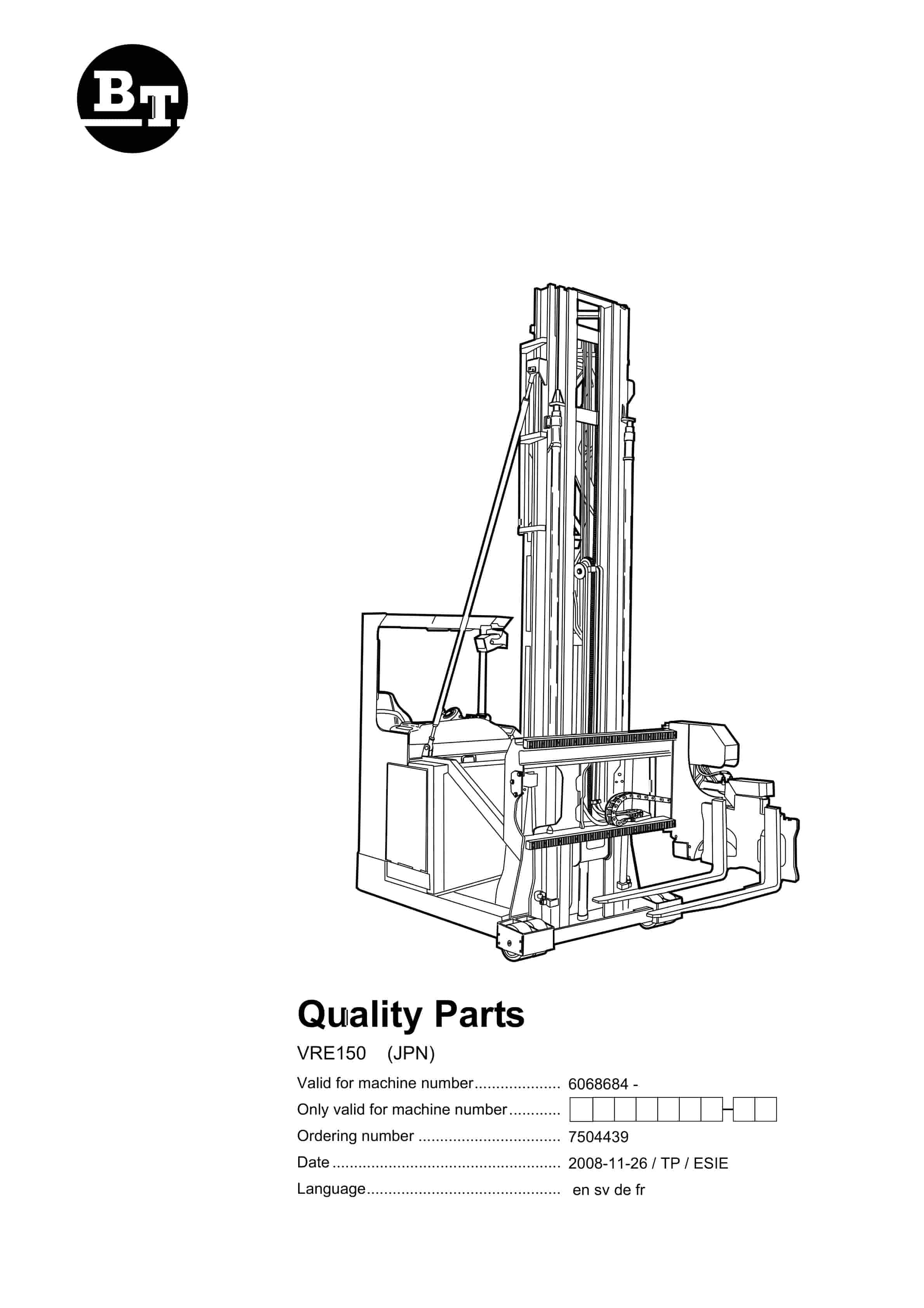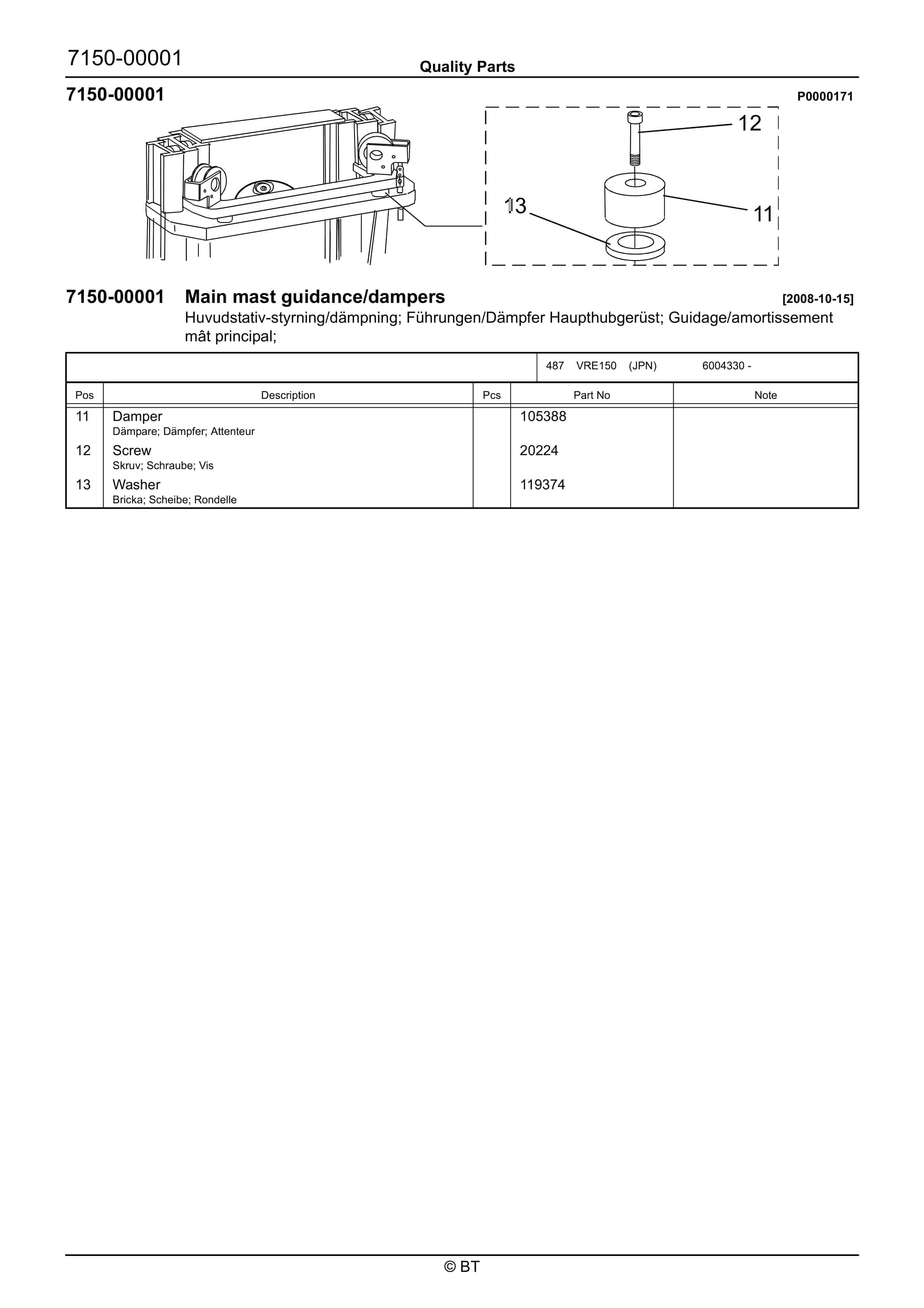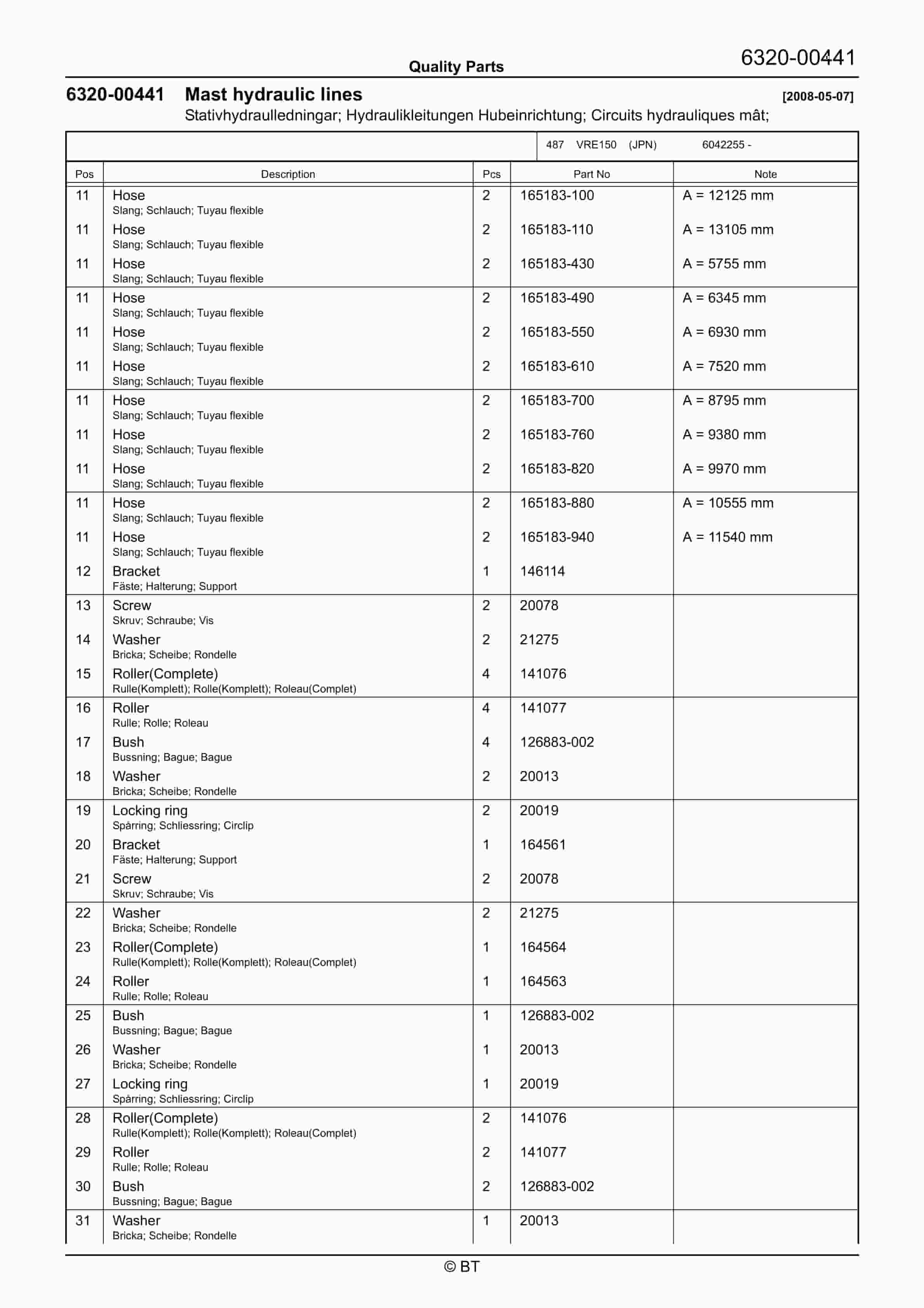BT BTL20EW, BTL20EWO, BTL30EW, BTL30EWO, L20BR, L20BRO, L30BR, L30BRO Quality Parts 177967