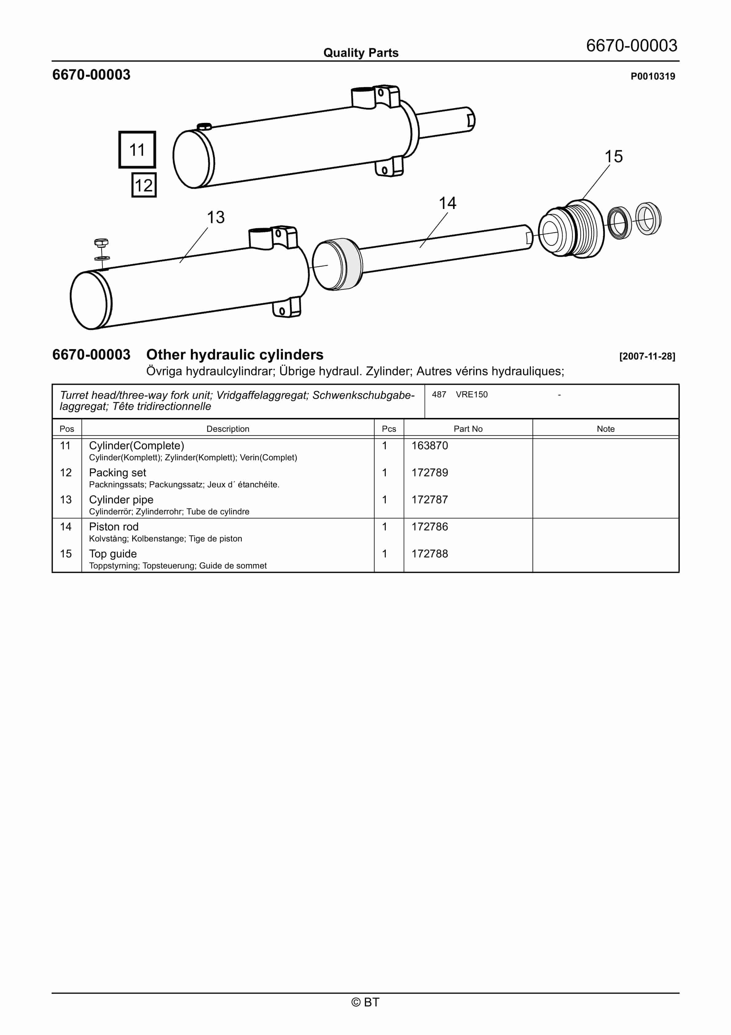 BT VRE150 Quality Parts 7520015