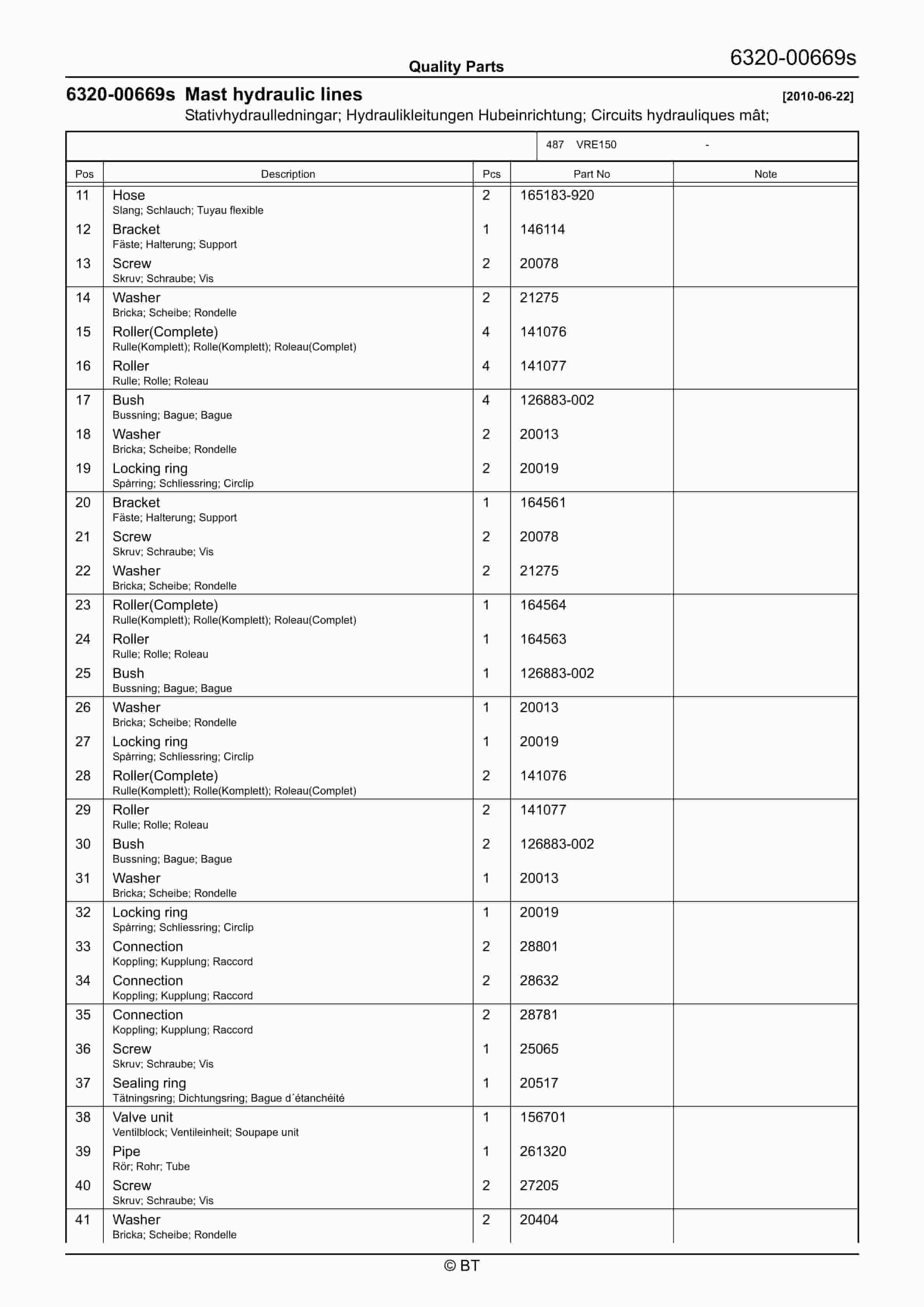 BT VRE150 Quality Parts 7521168
