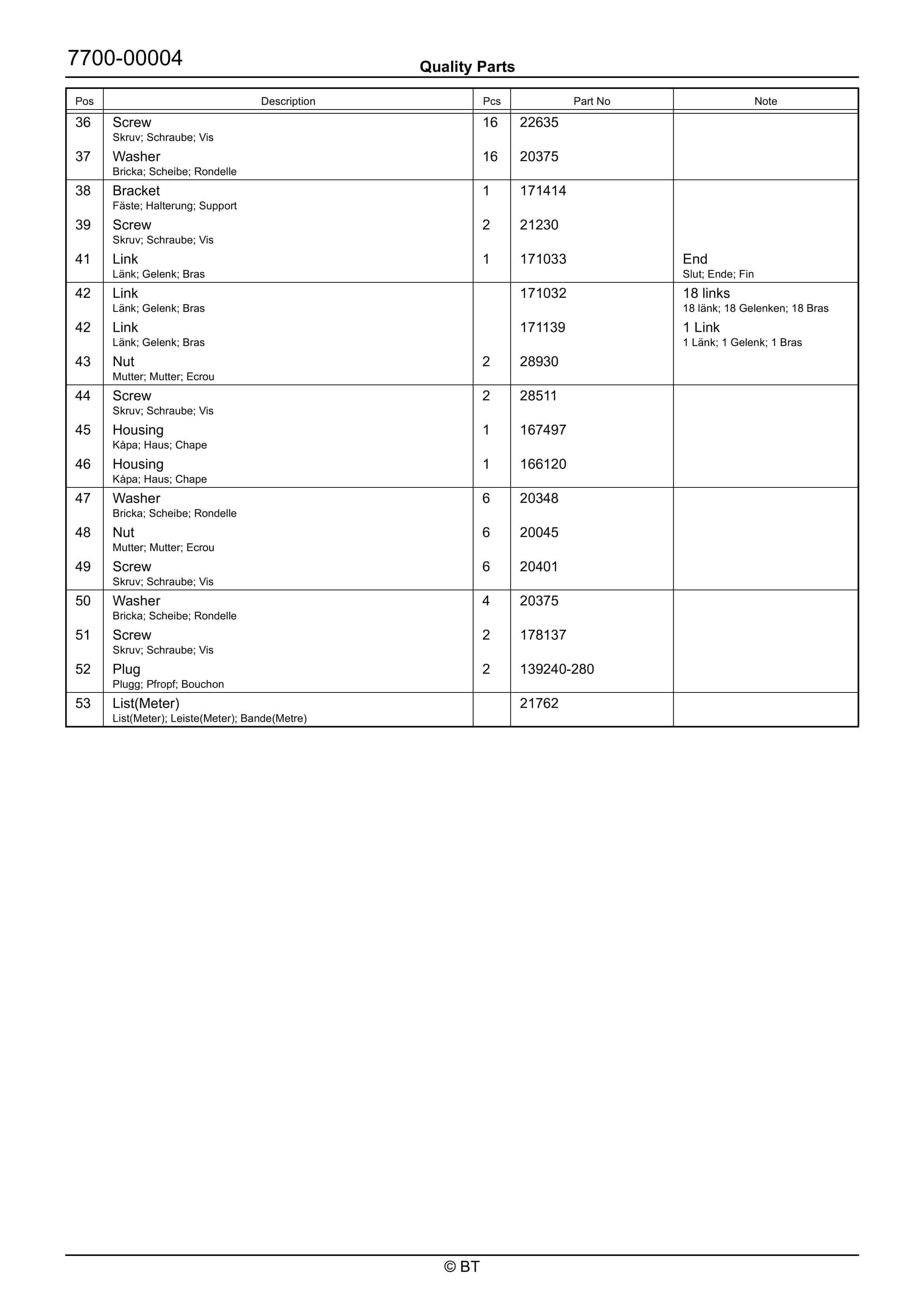 BT 600-TT, 602-TT, 604-TT, 608-TT, 609-TT, 610-TT, 612-TT, 620-TT Quality Parts 208538