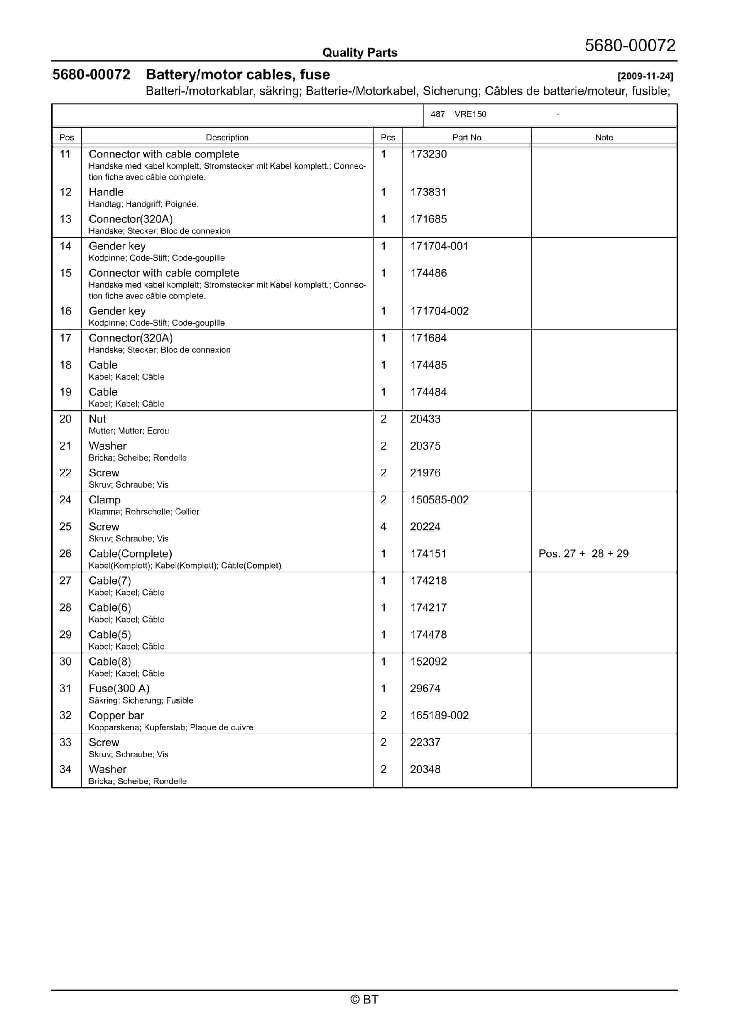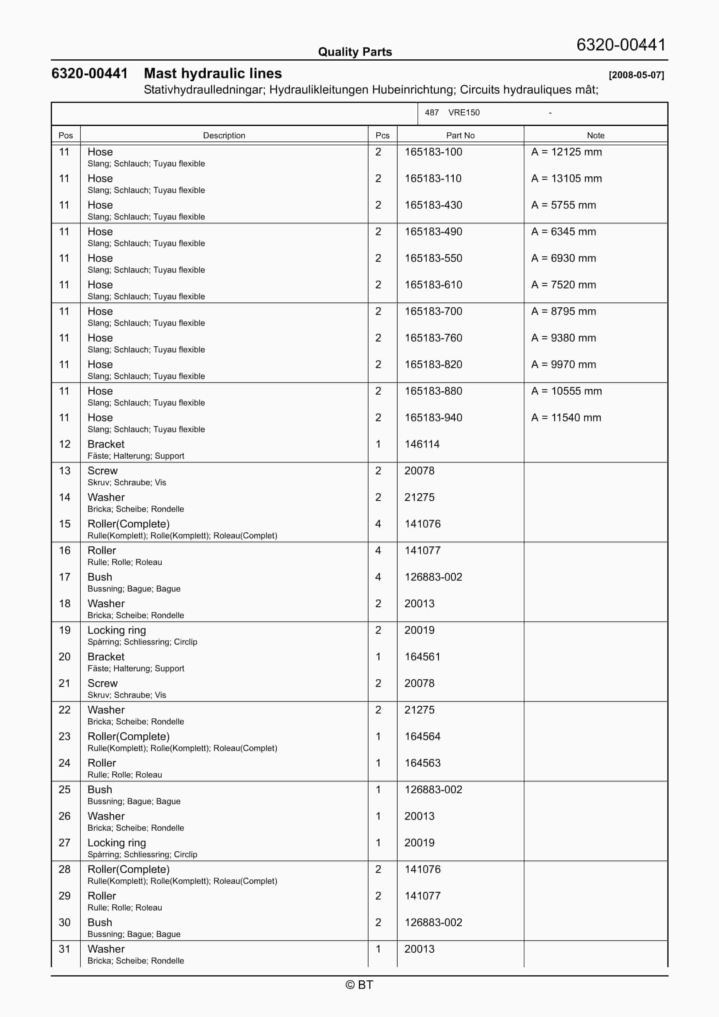 BT VRE150 Quality Parts 7521694