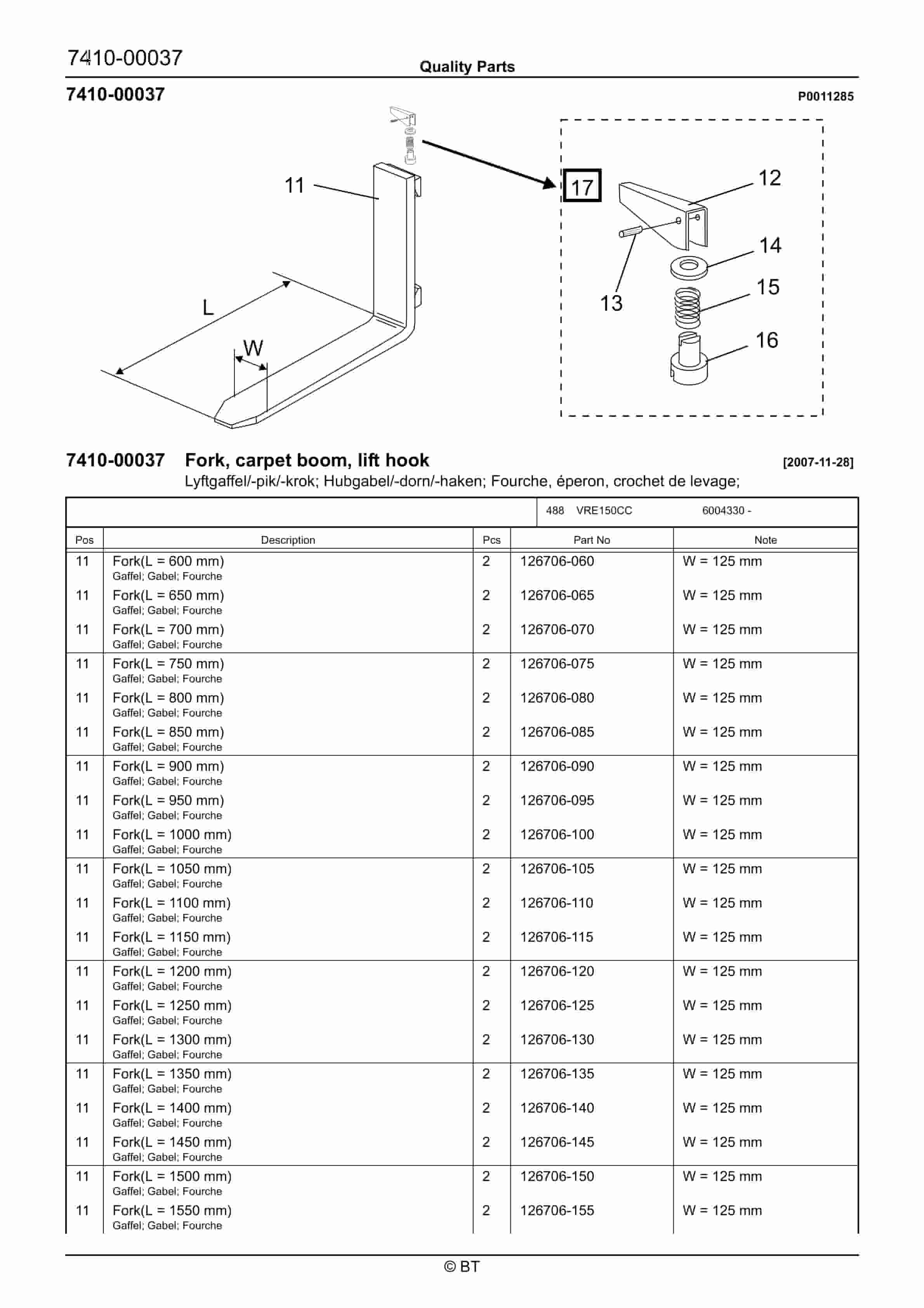BT 602-TT, 608-TT, 609-TT, 610-TT, 612-TT, 620-TT Quality Parts 7504691