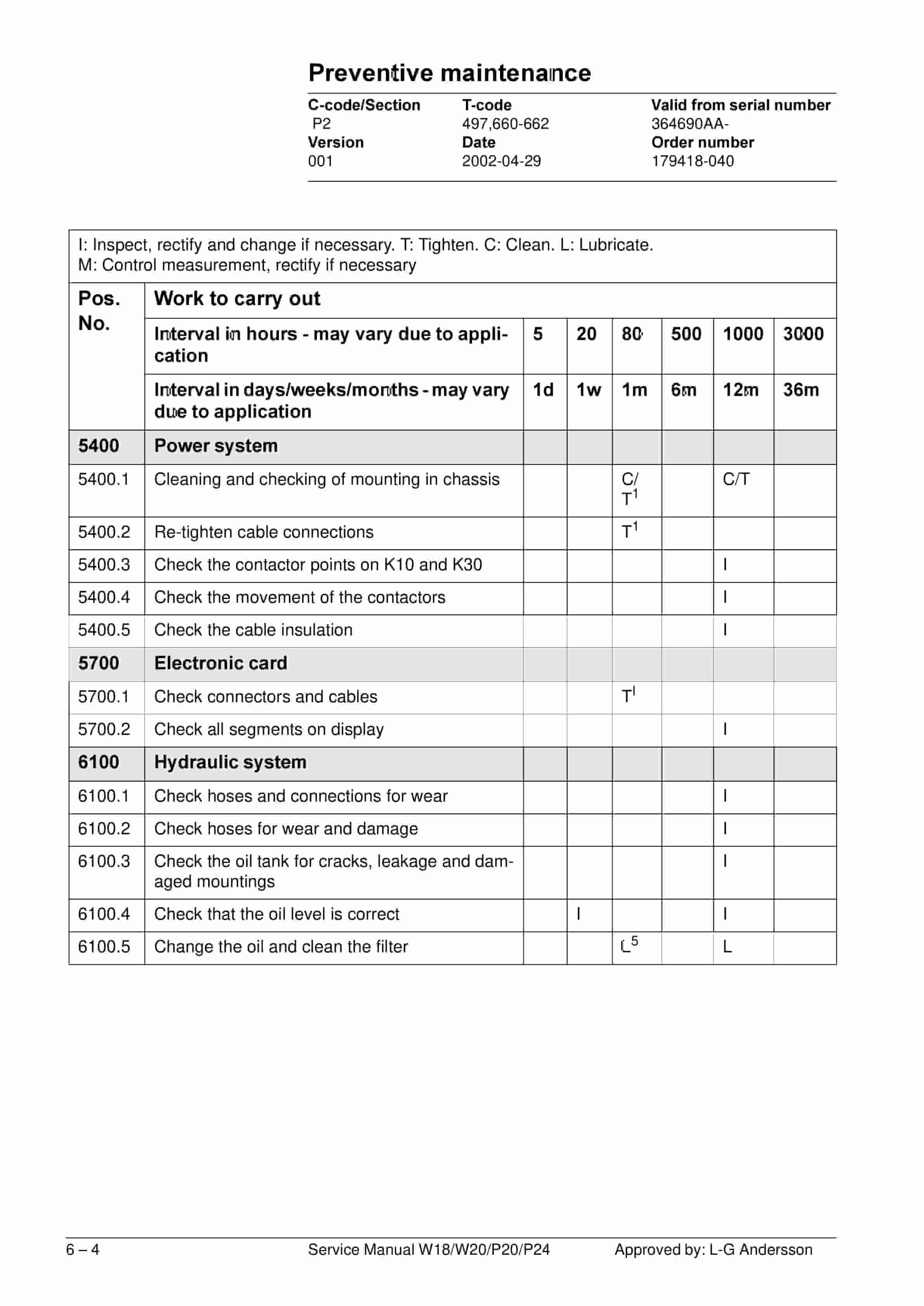 - 6.4. Lubrication schedule P20
