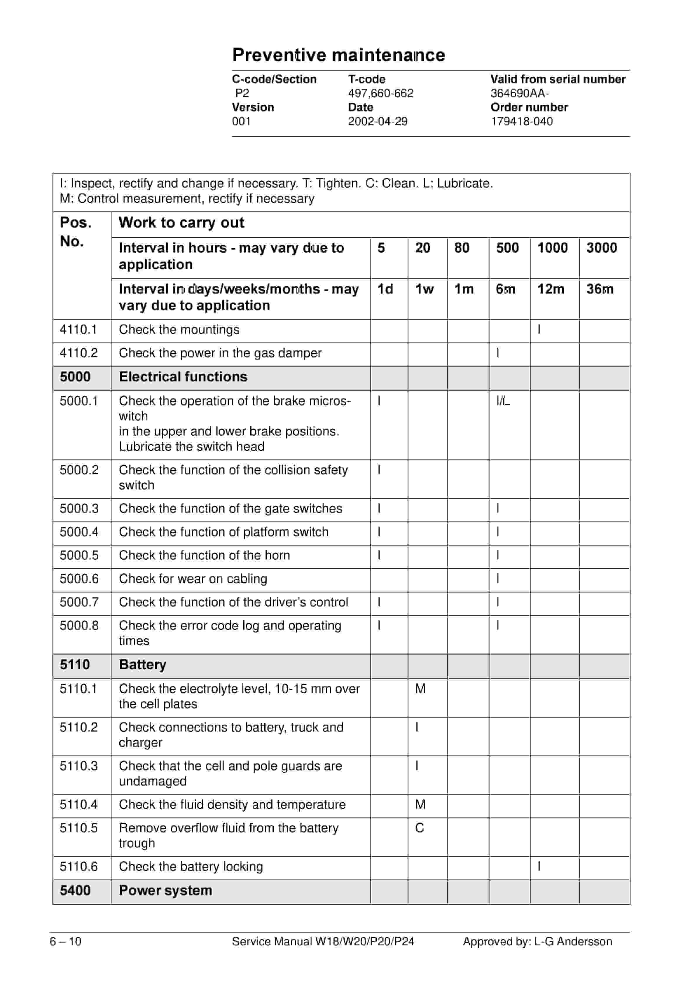 - 6.3. Maintenance schedule P20