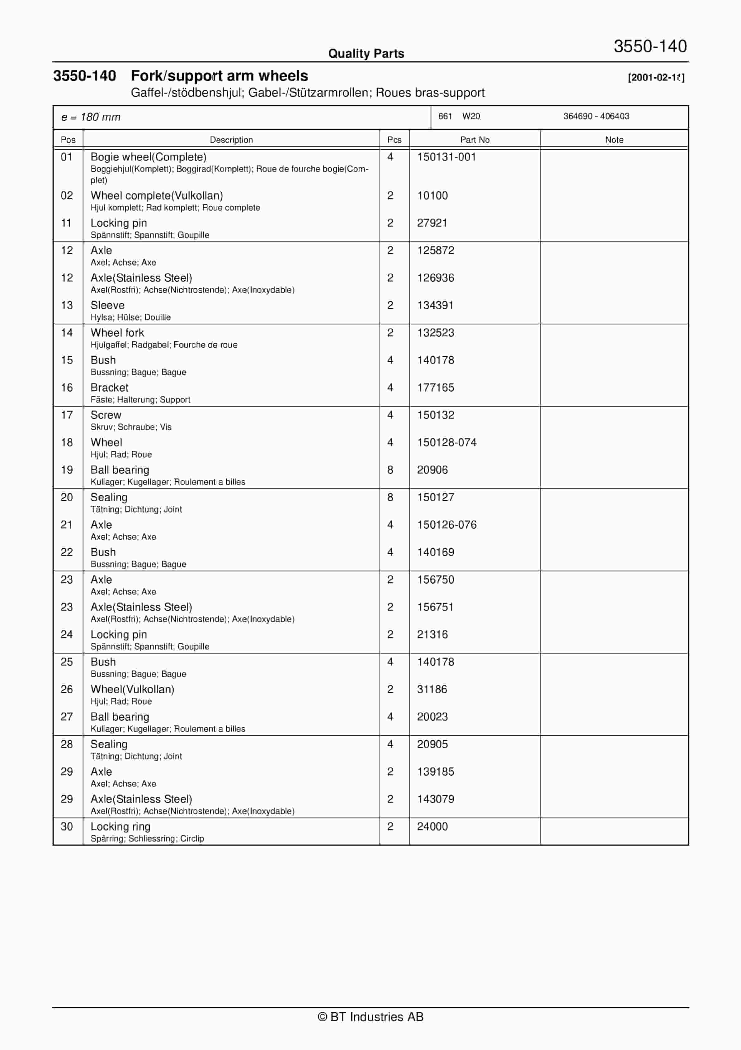 BT C3E150, C3E160, C3E160L, C3E180, C3E180L, C3E200 Spare Parts Catalog 0350202R3-0