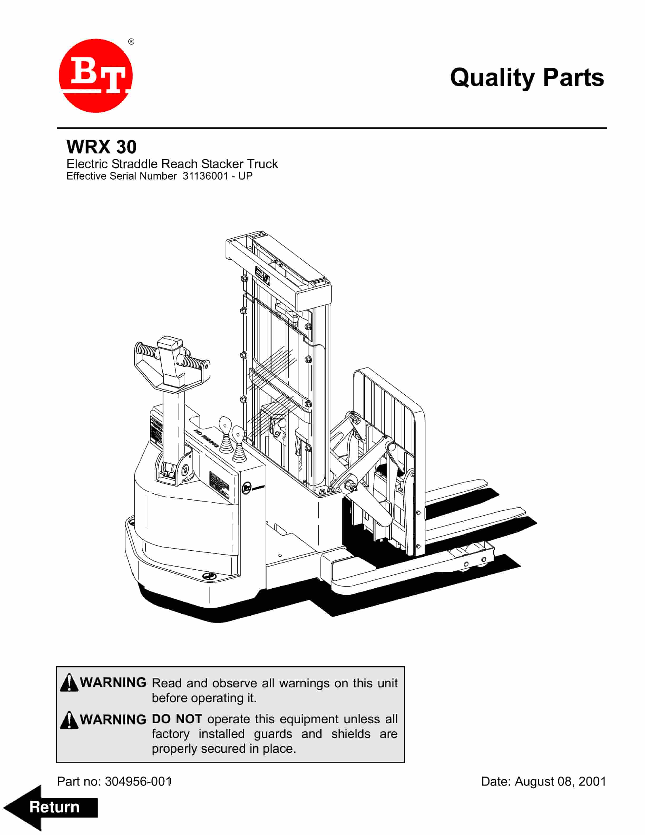 BT WRX-30 Electric Straddle Reach Stacker Truck Parts Manual 304956-001