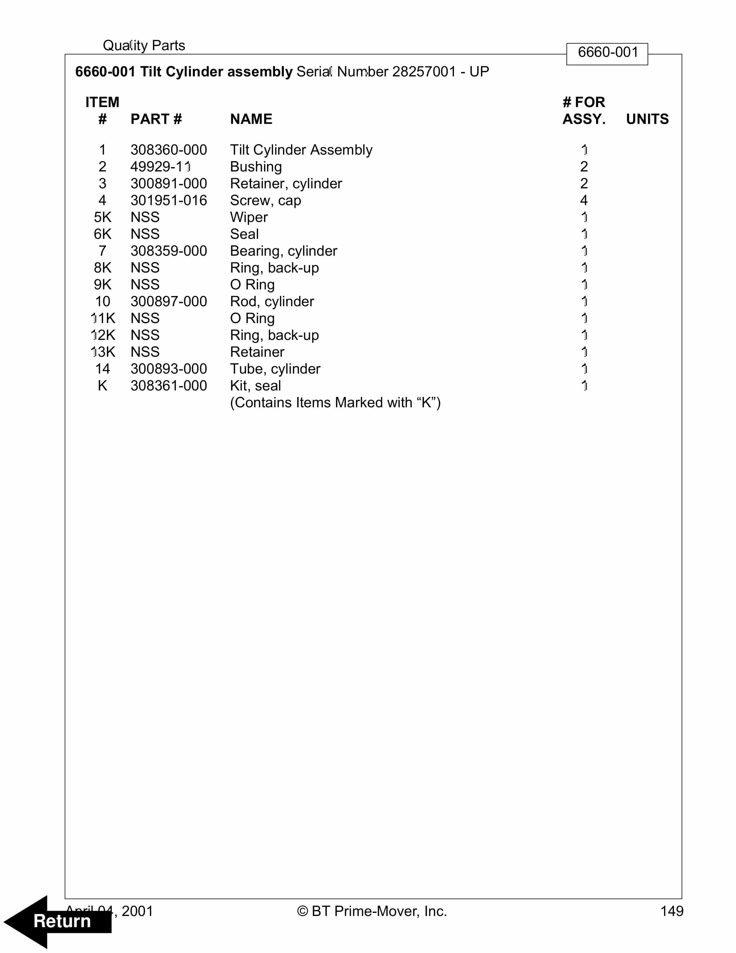 - 10.22. Tilt Cylinder assembly Serial Number 28257001 – UP