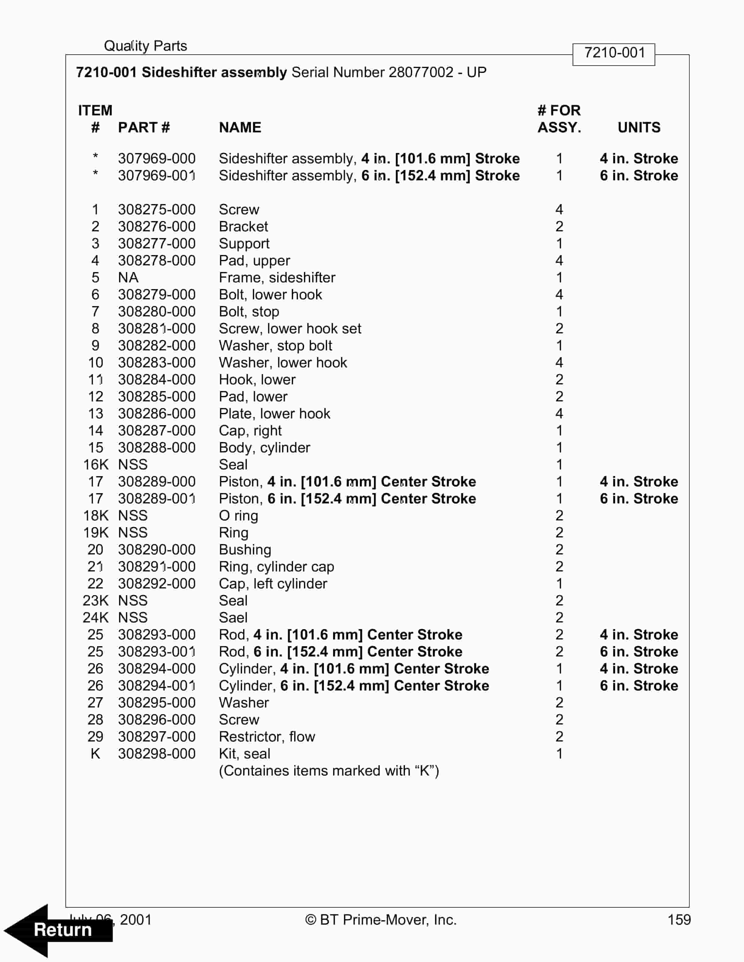 - 11.4. Sideshifter assembly Serial Number 28077002 – UP