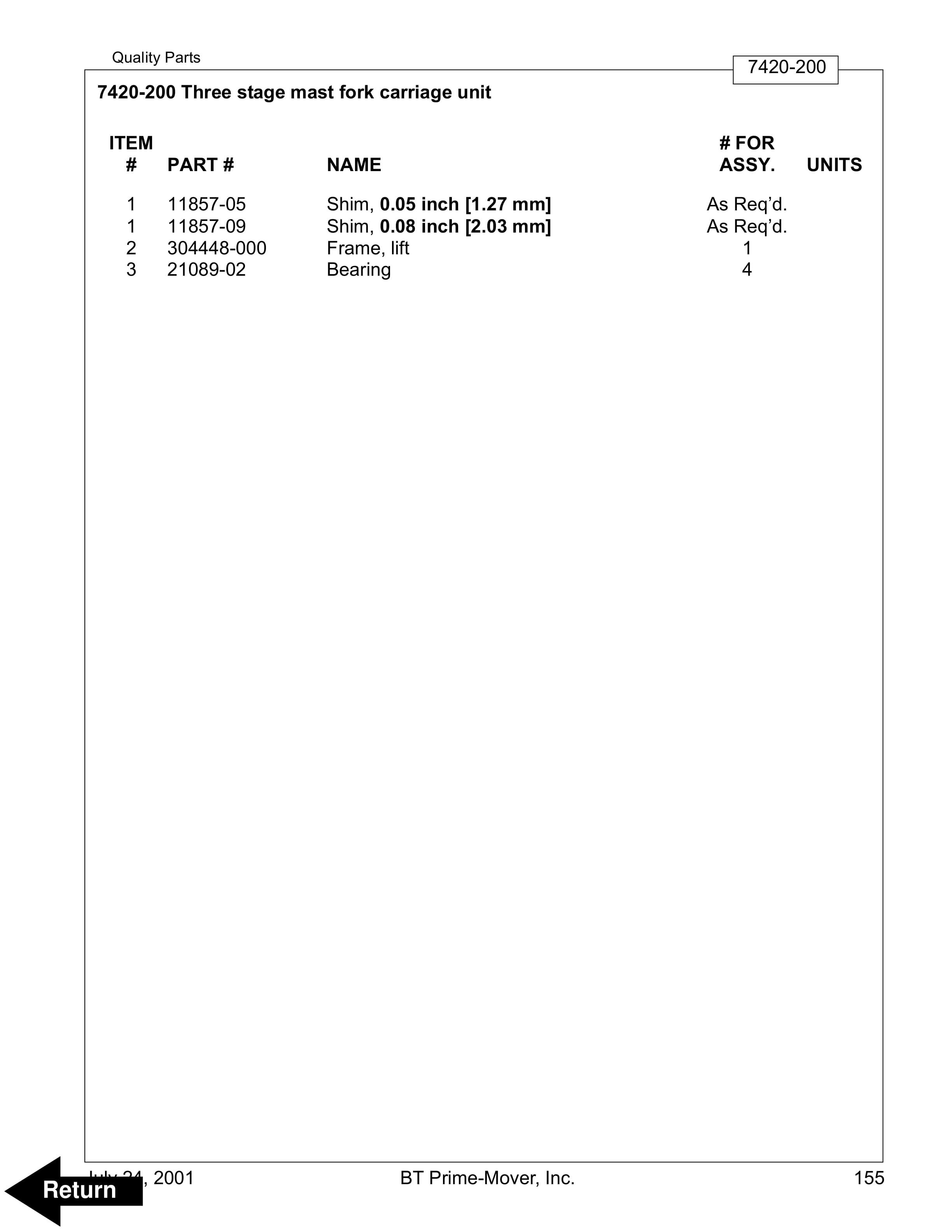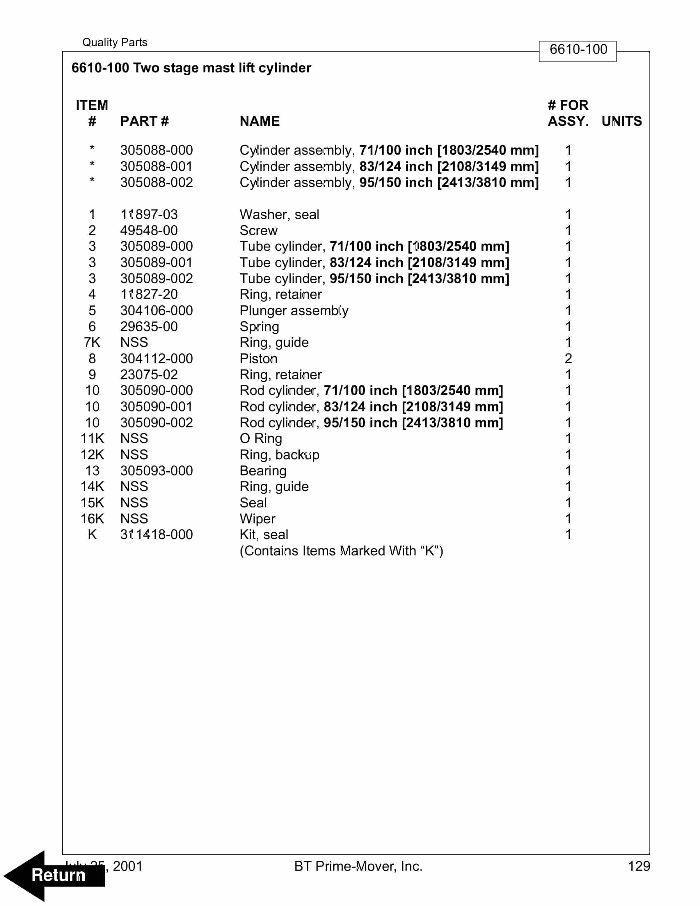 - 11.12. Two stage mast lift cylinder Serial Number 28163001 – UP