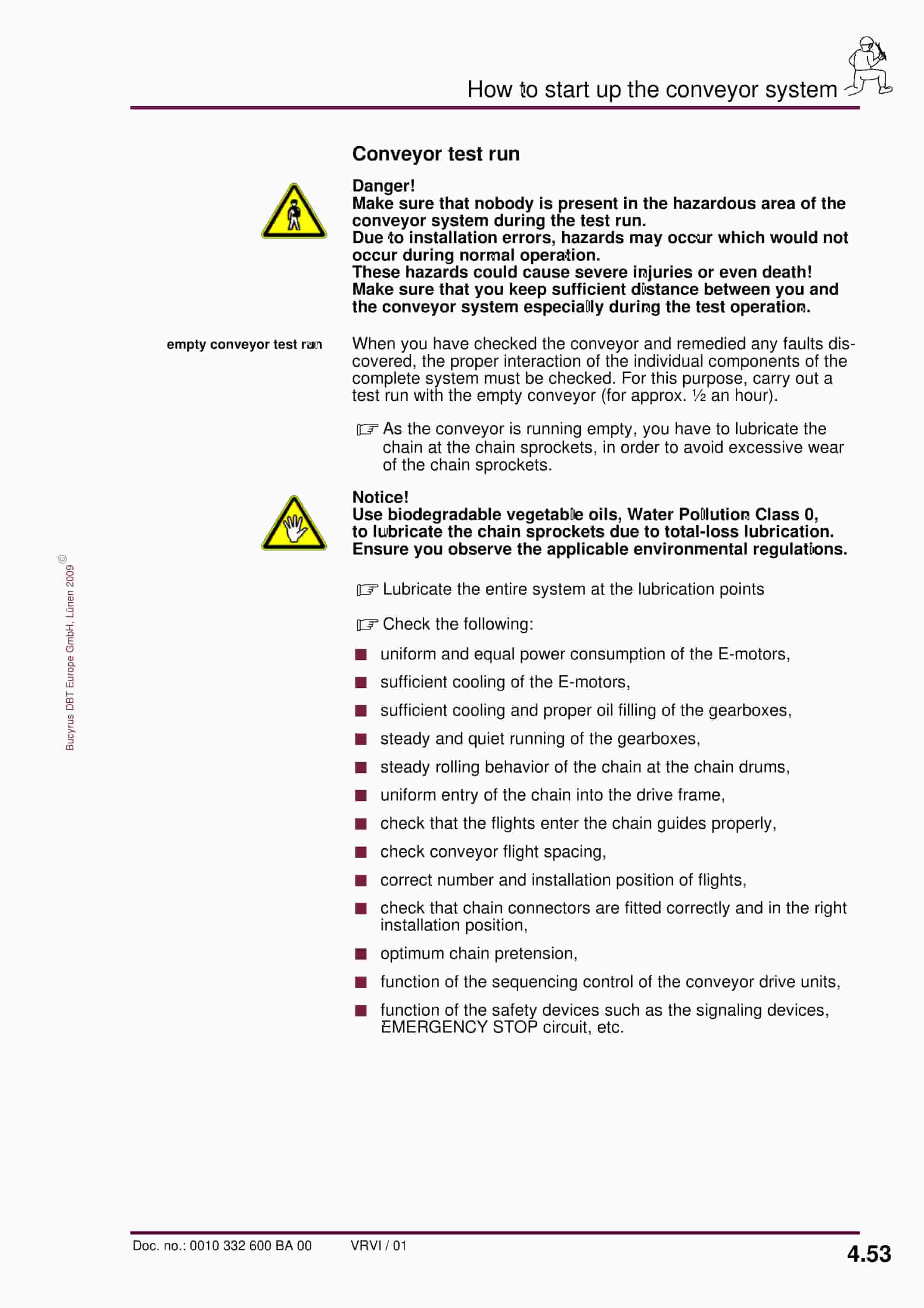 • 74. Test operation of the conveyor 4.50 . . . . . . . . . . . . . . . . . . . . . . .