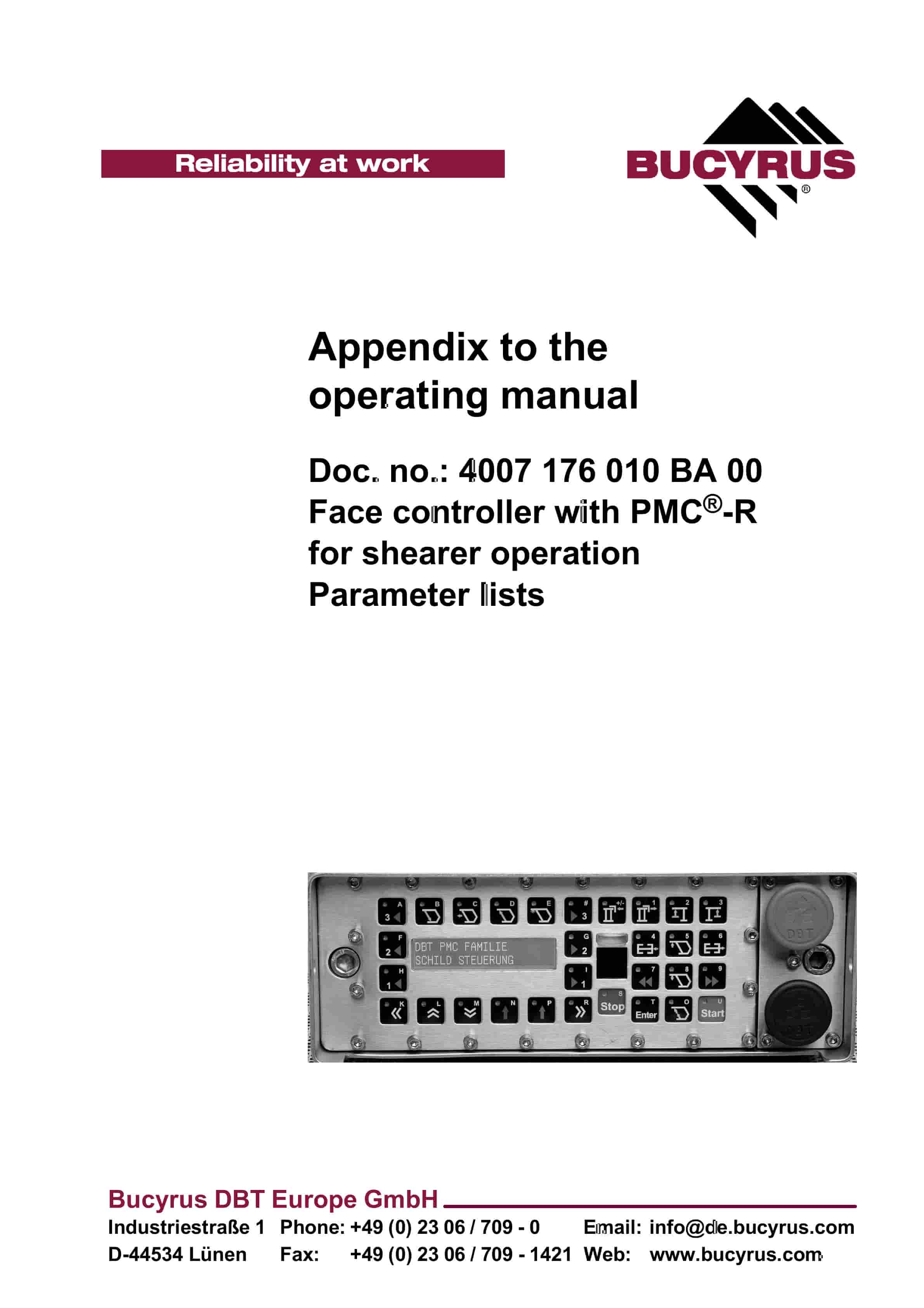 Bucyrus Face Controller With PMC-R Operating Manual 4007 176 010 BA 00