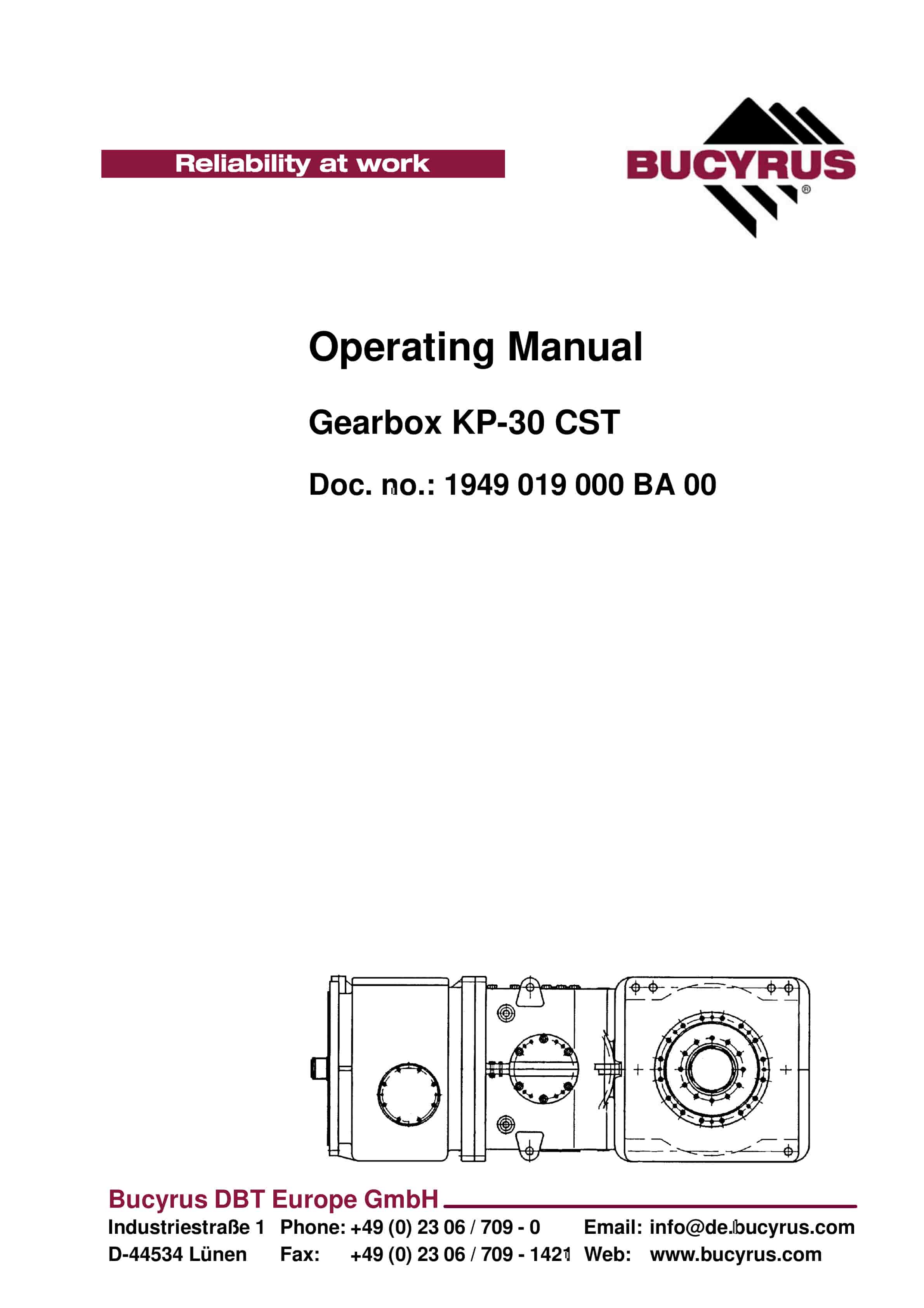Bucyrus Gearbox KP-30 CST Operating Manual 1949 019 000 BA 00-5