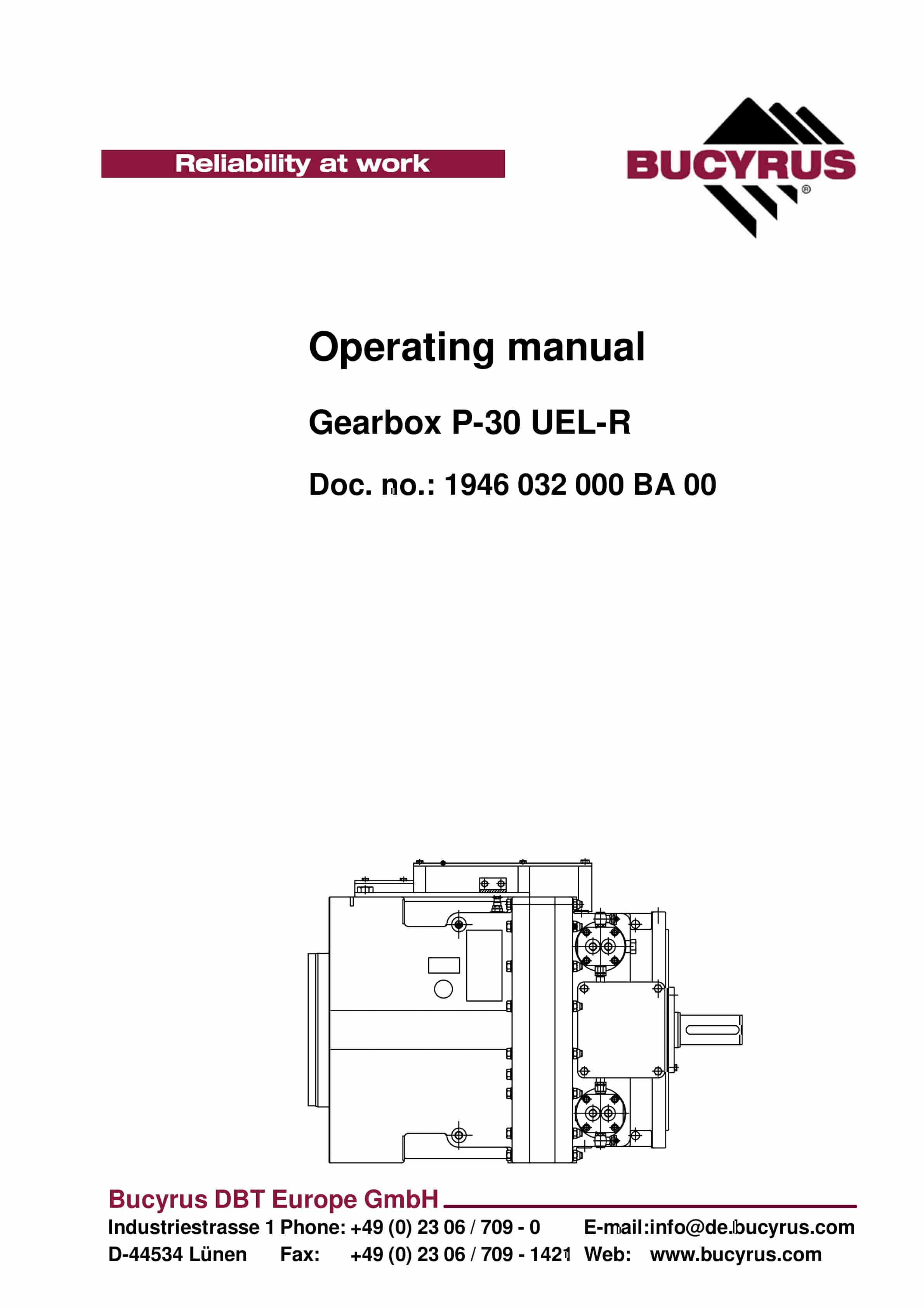 Bucyrus Gearbox P-30 UEL-R Operating Manual 1946 032 000 BA 00