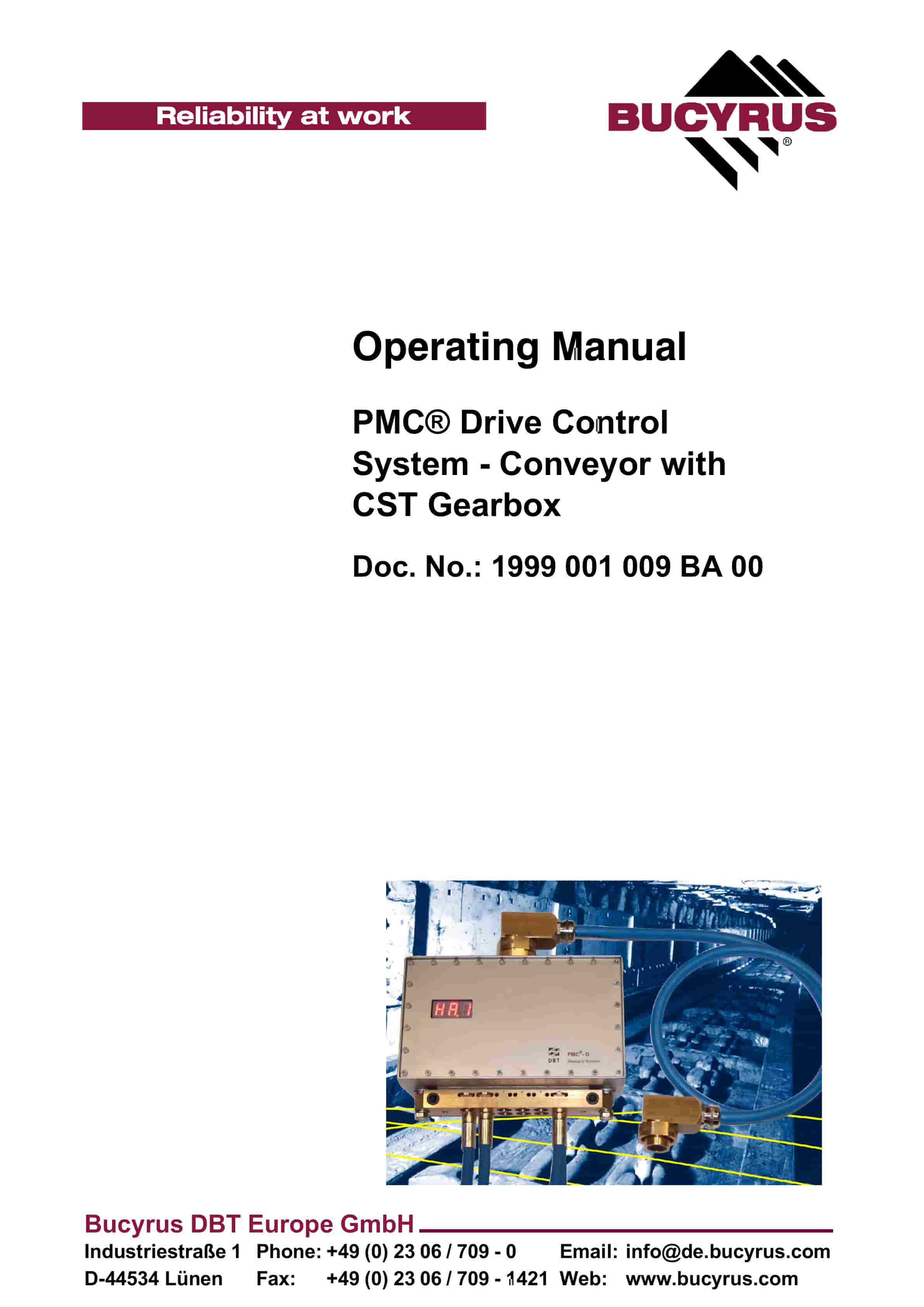 Bucyrus PMC Drive Control System – Conveyor With CST Gearbox Operating Manual 1999 001 009 BA 00