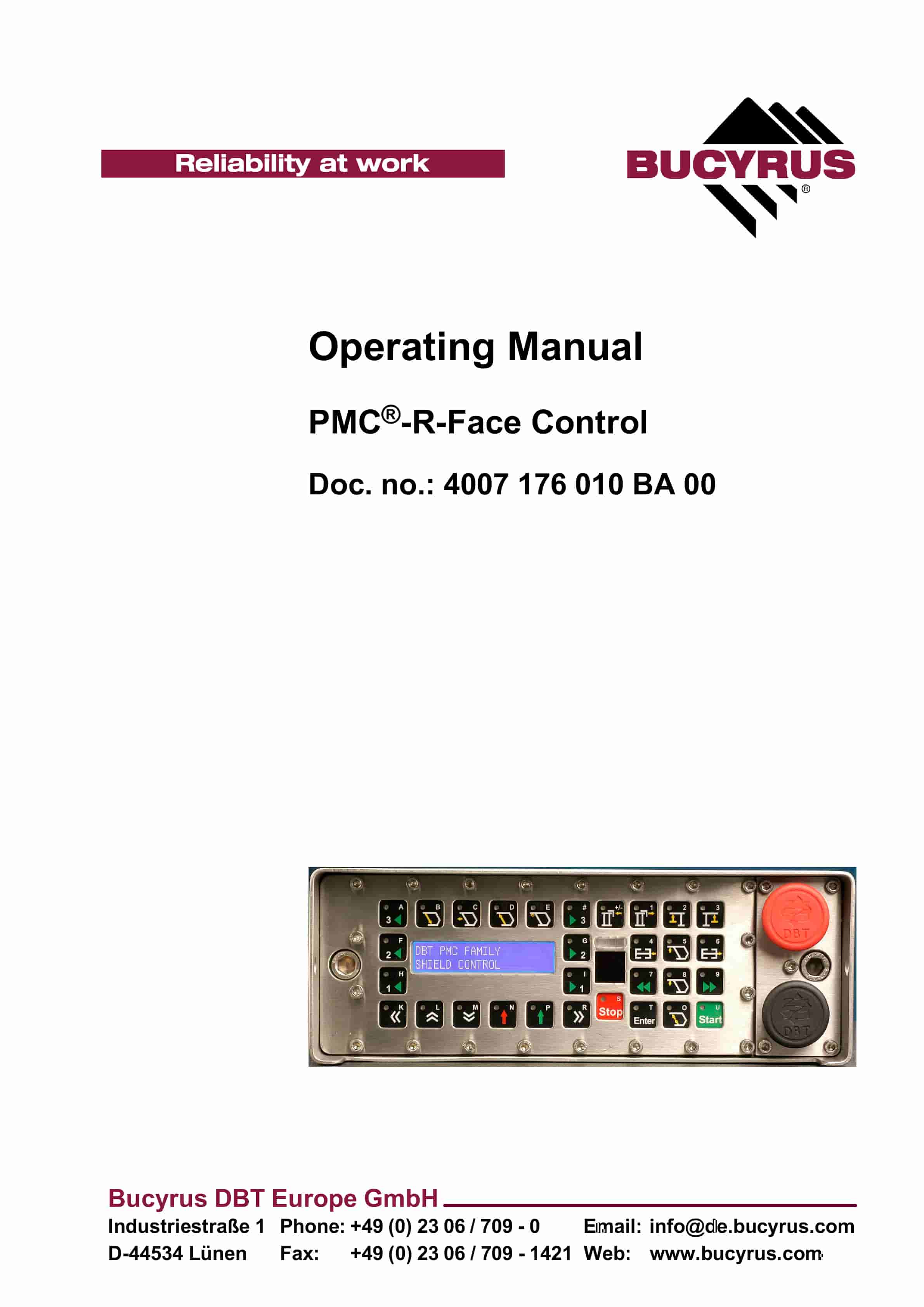 Bucyrus PMC-R-Face Control Operating Manual 4007 176 010 BA 00-5