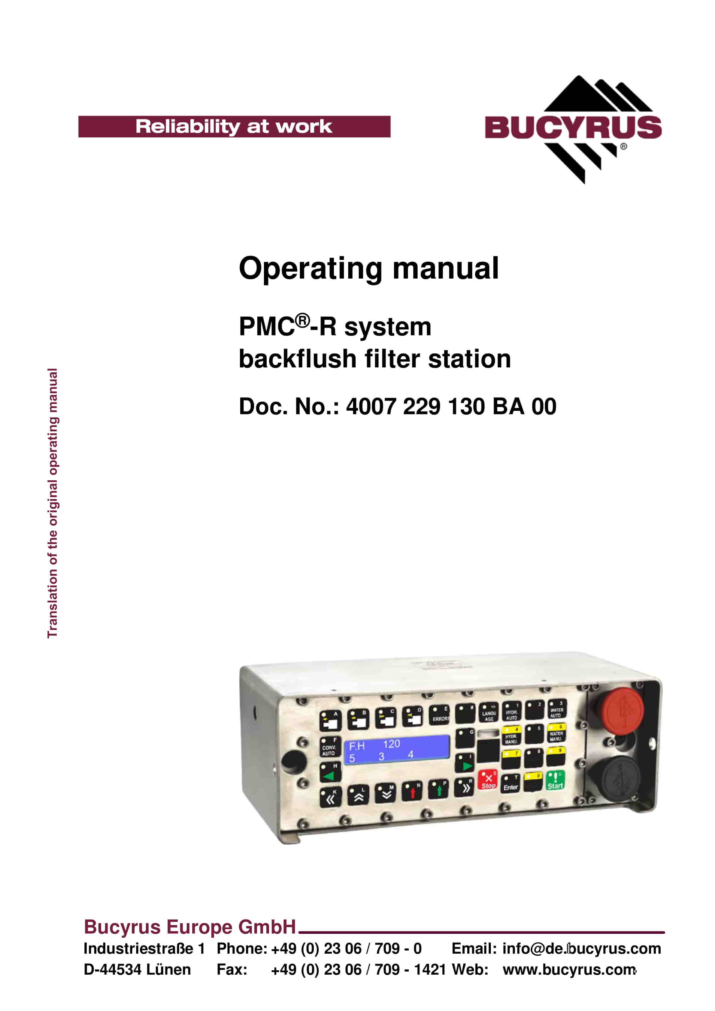 Bucyrus PMC-R System Backflush Filter Station Operating Manual 4007 299 130 BA 00
