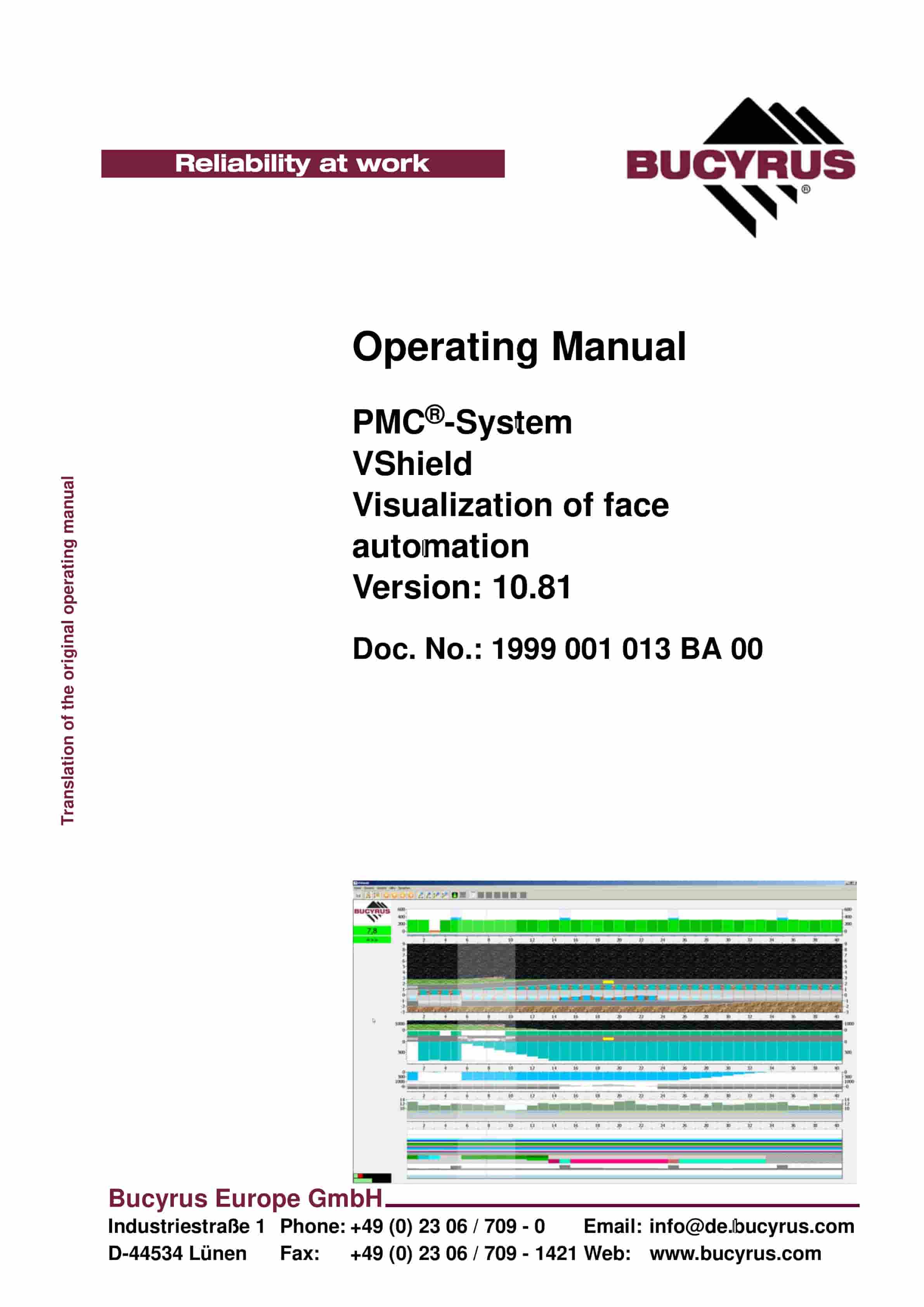 Bucyrus PMC-System Vshield Visualization Of Face Automation Ver 10.81 Operating Manual 1999 001 013 BA 00