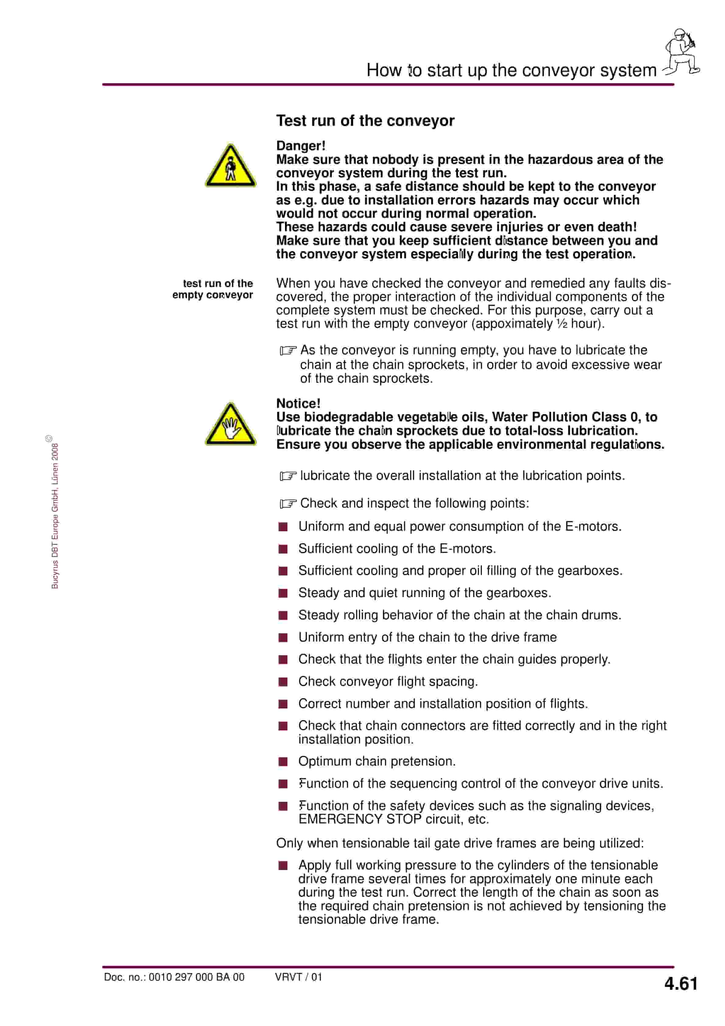 • 74. Test operation of the conveyor 4.50 . . . . . . . . . . . . . . . . . . . . . . .