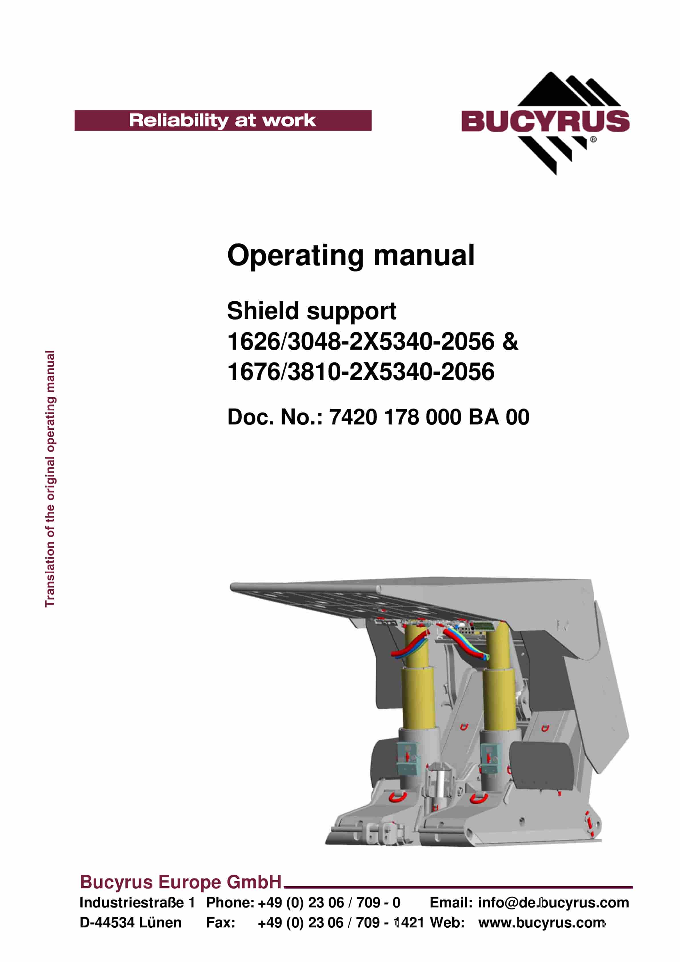 Bucyrus Shield 1626-3048-2 5340-2056 and 1676-3810-2 5340-2056 Operating Manual 7420 178 000 BA 00
