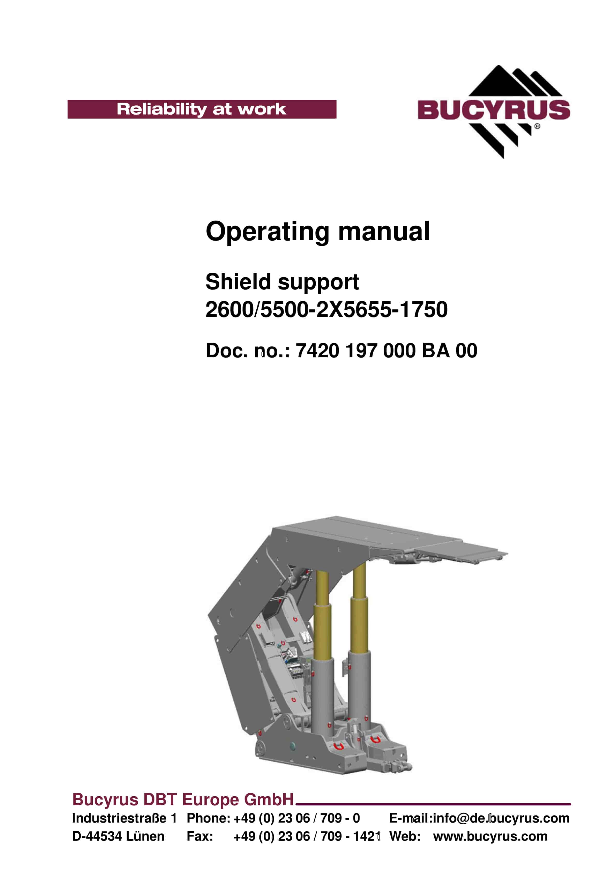 Bucyrus Shield 2600-5500-2 5655-1750 Operating Manual 7420 197 000 BA 00-2