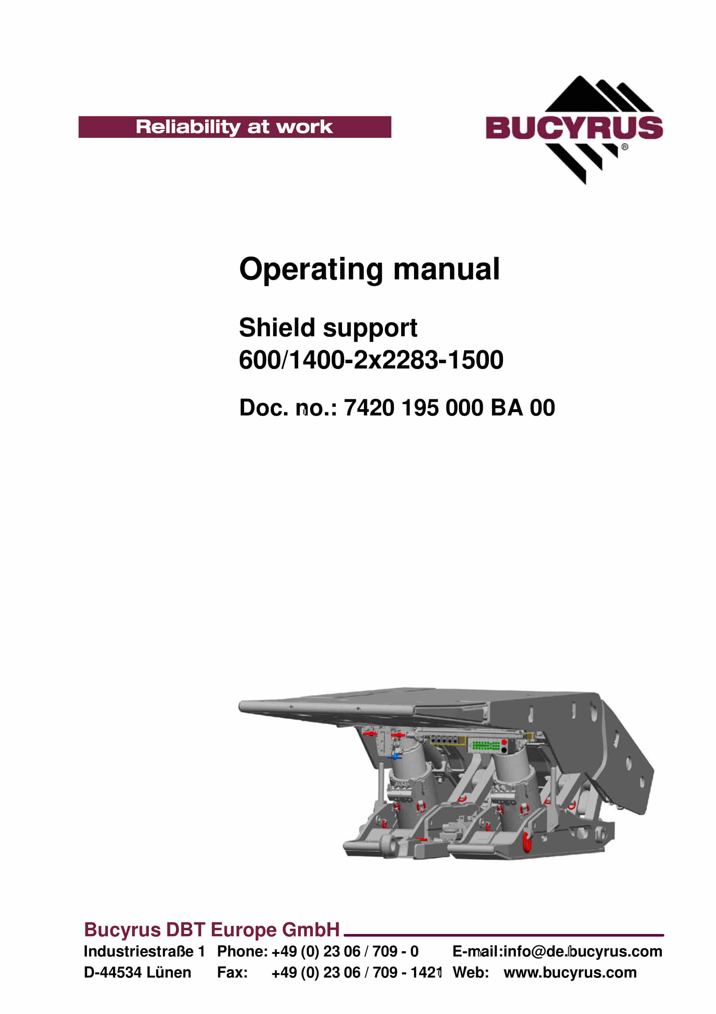 Bucyrus Shield 600-1420-2 2283-1500 Operating Manual 7420 195 000 BA 00-4