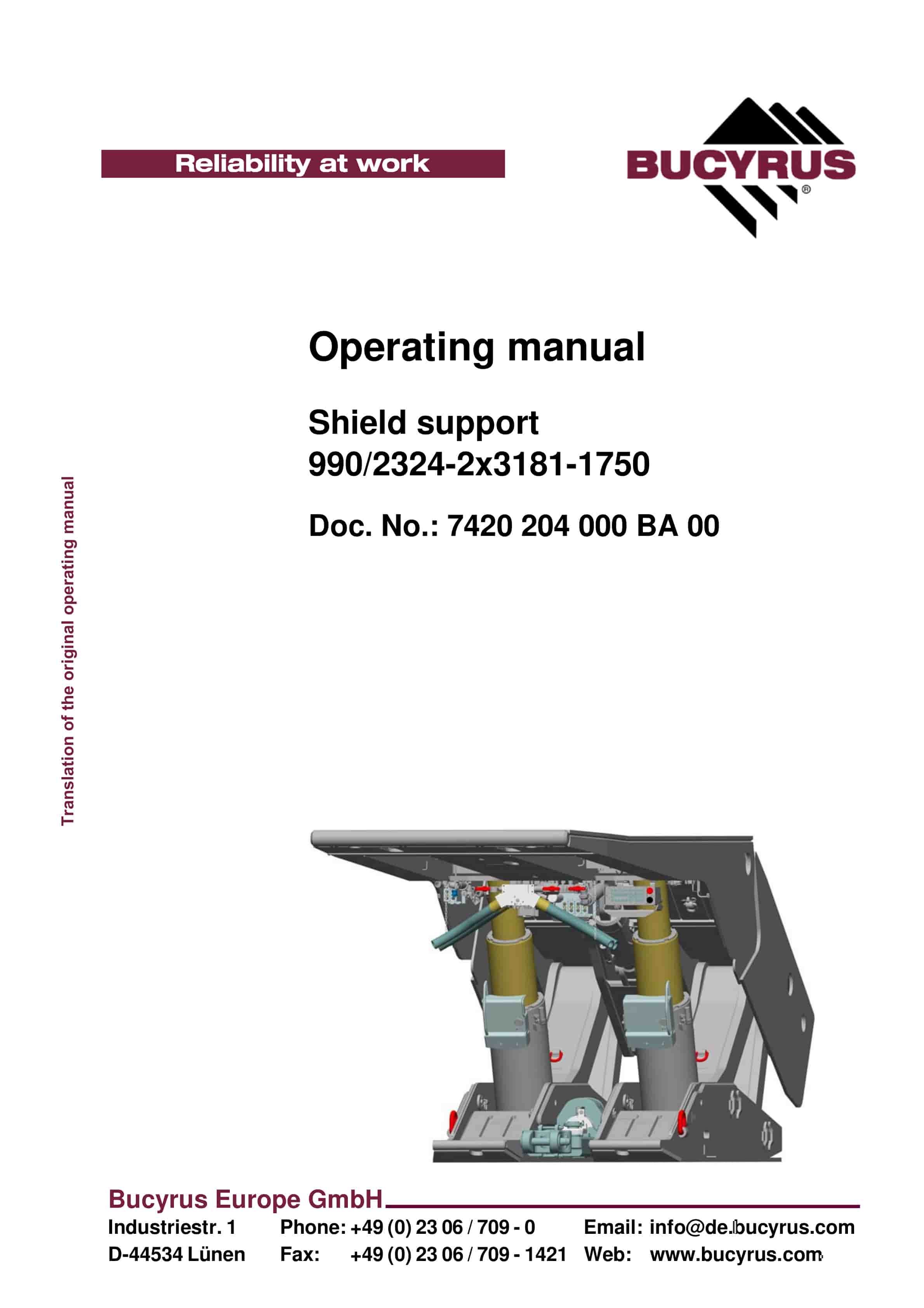 Bucyrus Shield 990-2324-2 3181-1750 Operating Manual 7420 204 000 BA 00-2