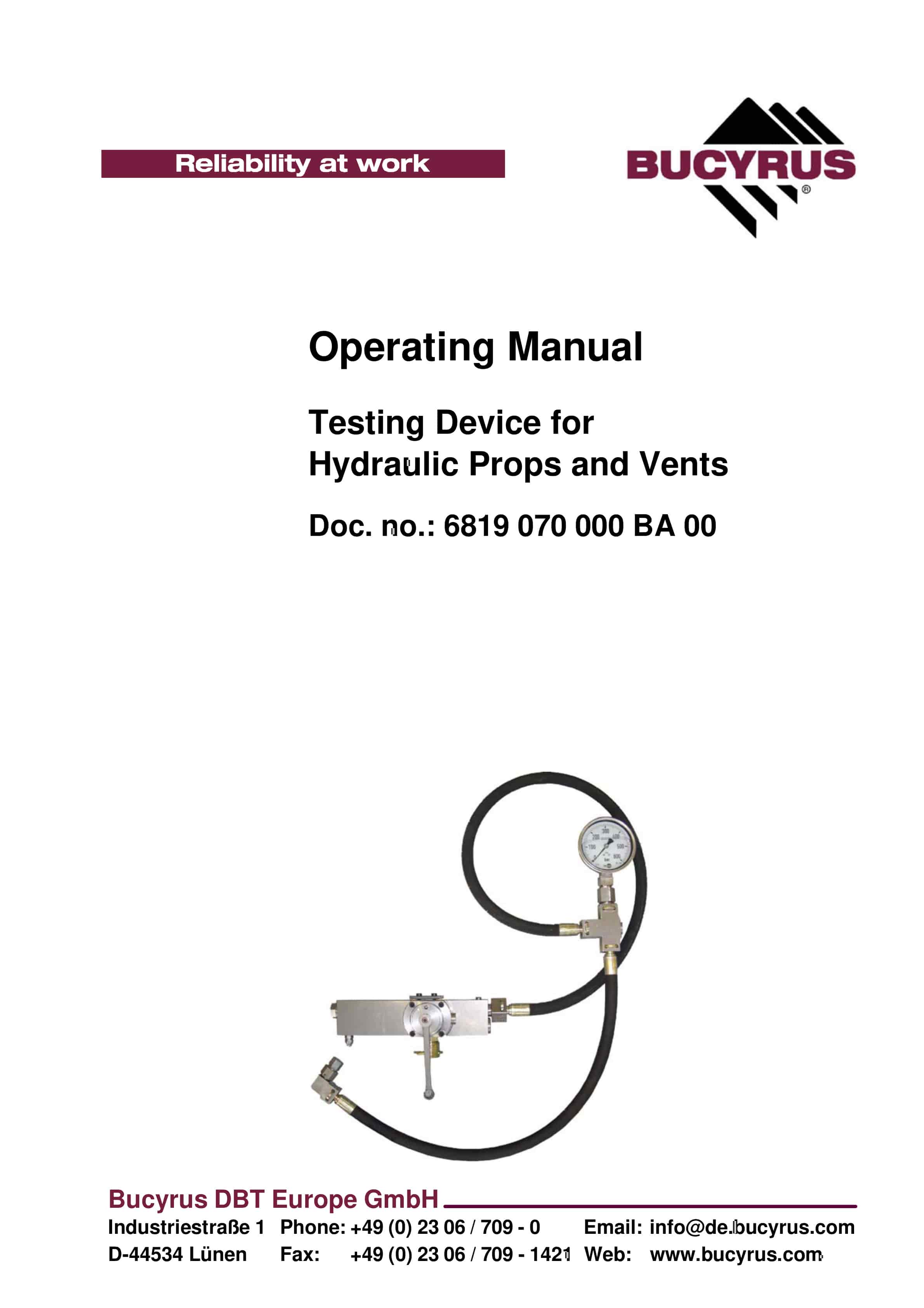 Bucyrus Testing Device For Hydraulic Props And Vents Operating Manual 6819 070 000 BA 00