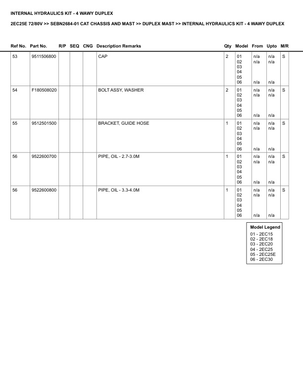 Caterpillar 2EC25E 72 80V Parts Manual SEBN2684-01