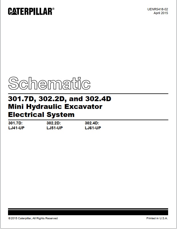 Caterpillar 301.7D, 302.2D, 302.4D Mini Hydraulic Excavator Electrical System Schematic UENR5418-02
