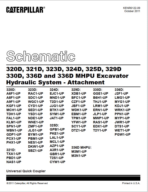 - 320D, 321D, 323D, 324D, 325D, 329D, 330D, 336D, 336D MHPU Excavator Hydraulic System – Attachment