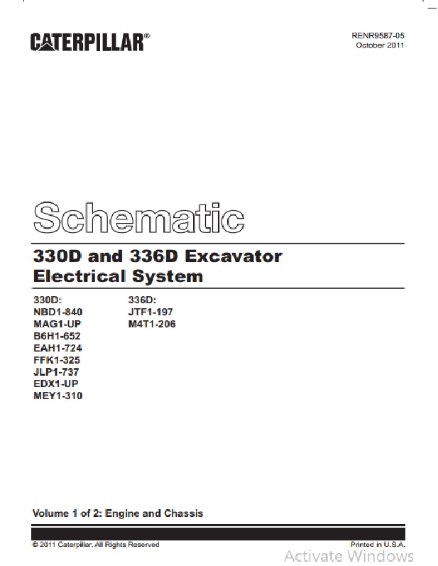 Caterpillar 330D, 336D Excavator Electrical System Schematic RENR9587-05