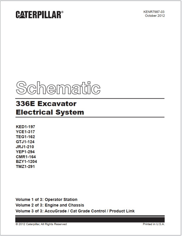 Caterpillar 336E Excavator Electrical System Schematic KENR7987-03