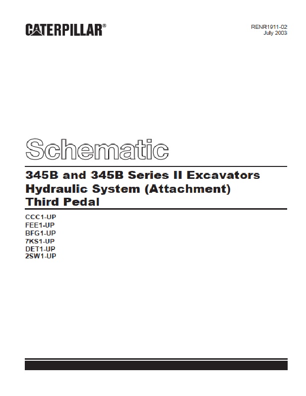 Caterpillar 345B, 345B Series II Excavators Hydraulic System (Attachment) Third Pedal Schematic RENR1911-02