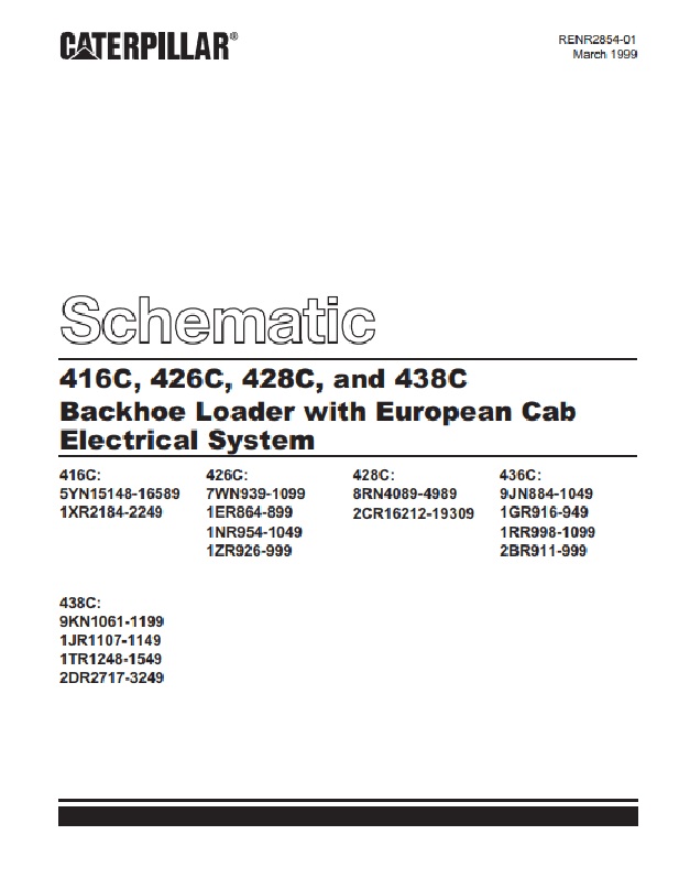 Caterpillar 416C, 426C, 428C, 438C Backhoe Loader with European Cab Electrical System Schematic RENR2854-01