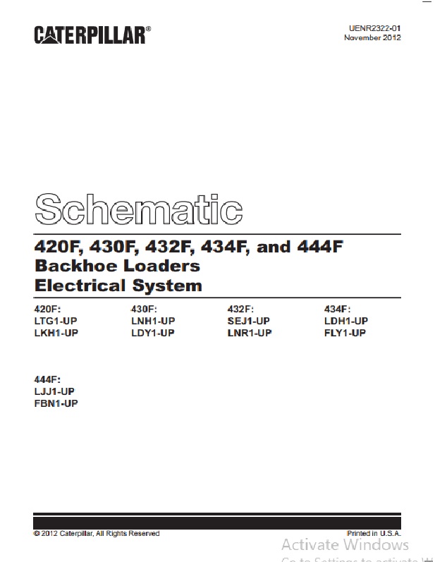 Caterpillar 420F, 430F, 432F, 434F, 444F Backhoe Loader Electrical System Schematic UENR2322-01