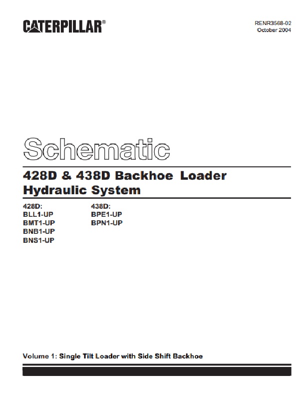 Caterpillar 428D, 438D Backhoe Loader Hydraulic System Schematic RENR3568-02