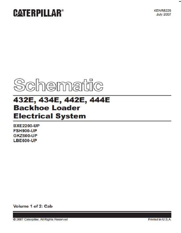 Caterpillar 432E, 434E, 442E, 444E Backhoe Loader Electrical System Schematic KENR8229
