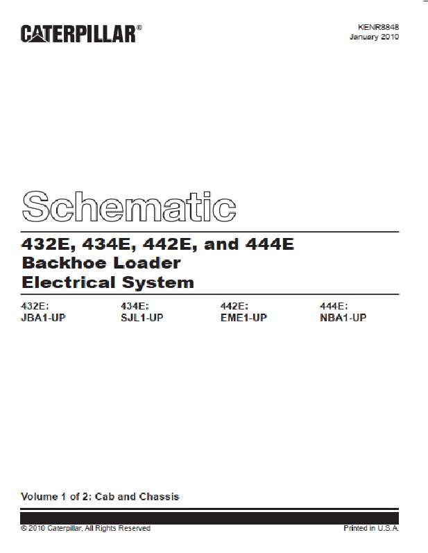 Caterpillar 432E, 434E, 442E, 444E Backhoe Loader Electrical System Schematic KENR8848