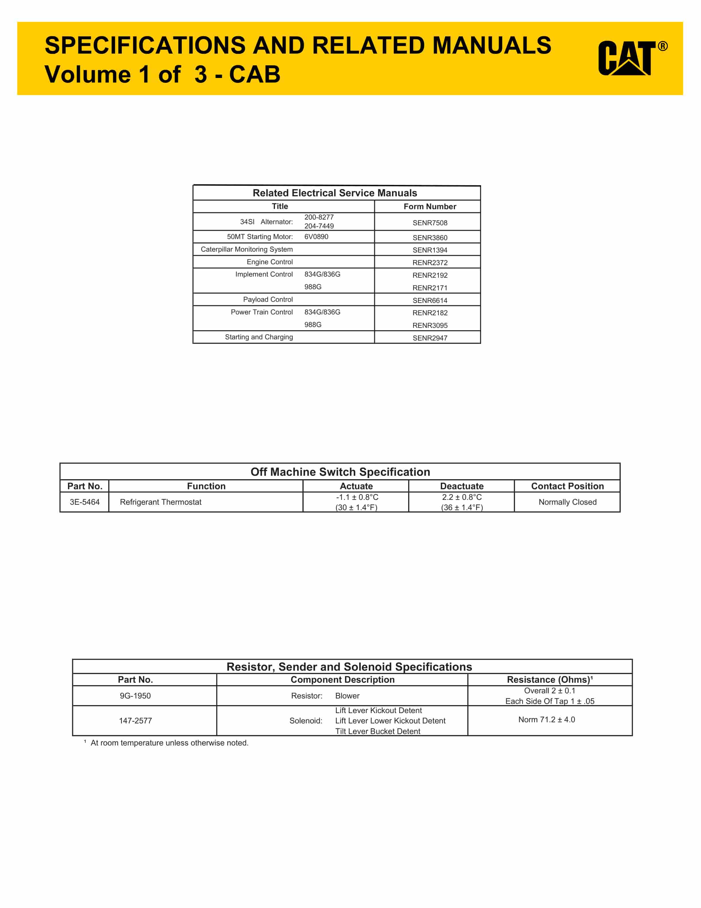 - 834G Wheel Tractor, 836G Landfill Compactor, 988G Wheel Loader Electrical System