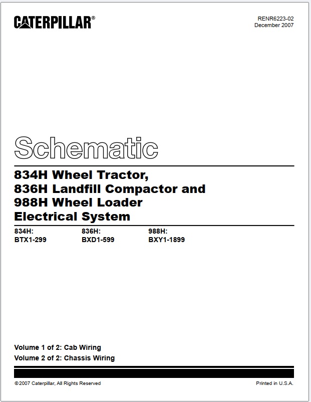 Caterpillar 834H Wheel Tractor, 836H Landfill Compactor, 988H Wheel Loader Electrical System Schematic RENR6223-02