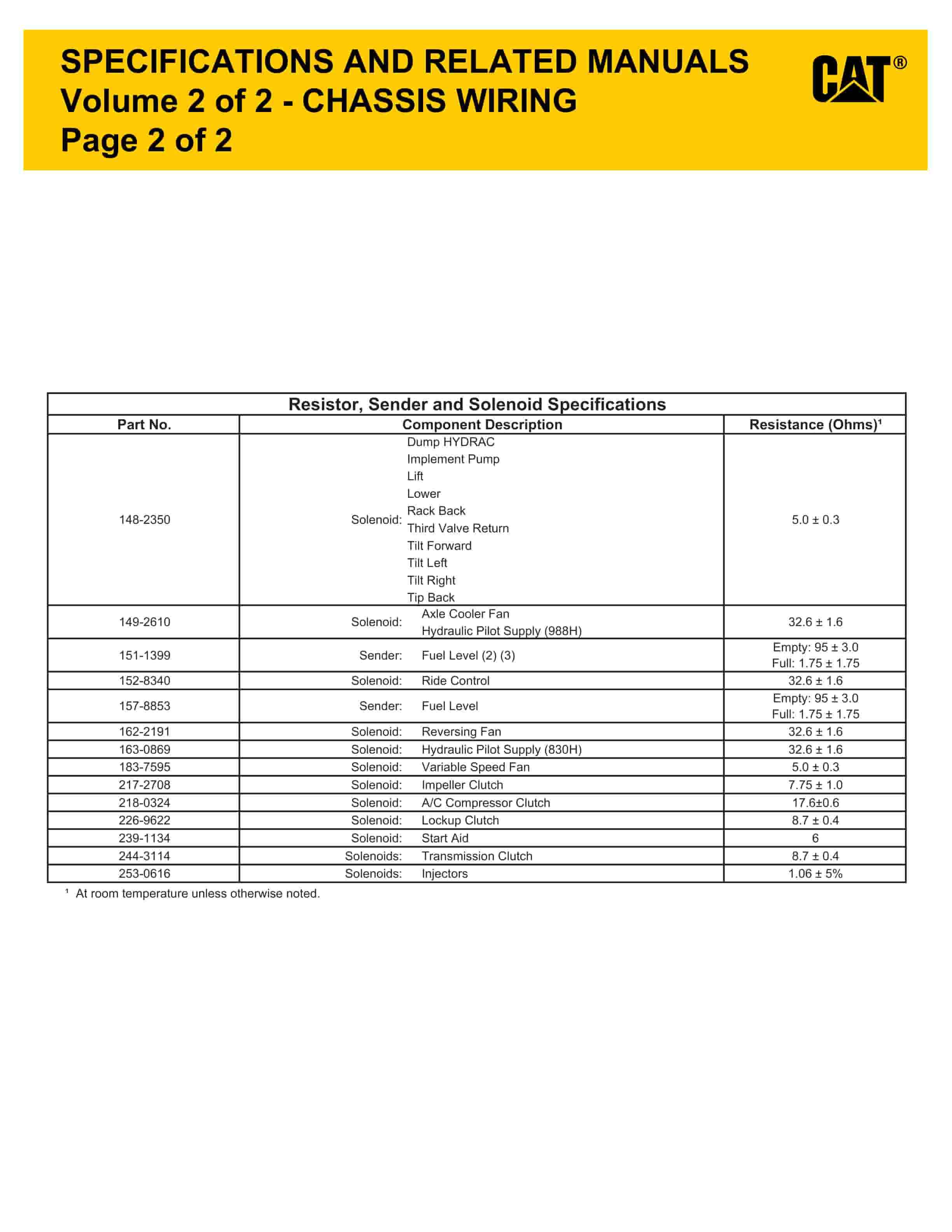 - 834H Wheel Tractor, 836H Landfill Compactor, 988H Wheel Loader Electrical System