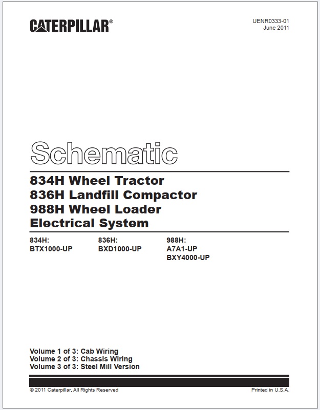 Caterpillar 834H Wheel Tractor, 836H Landfill Compactor, 988H Wheel Loader Electrical System Schematic UENR0333-01