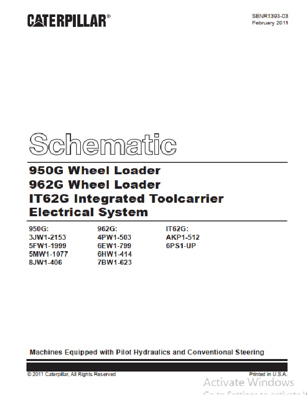 Caterpillar 950G, 962G Wheel Loader, IT62G Integrated Toolcarrier Electrical System Schematic SENR1393-03