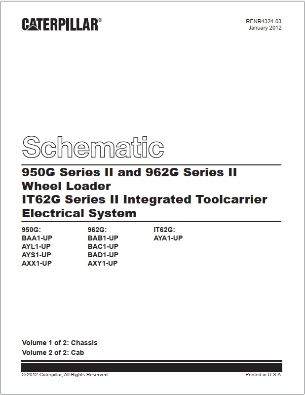 Caterpillar 950G, 962G Wheel Loader, IT62G Series II Electrical System Schematic RENR4324-03