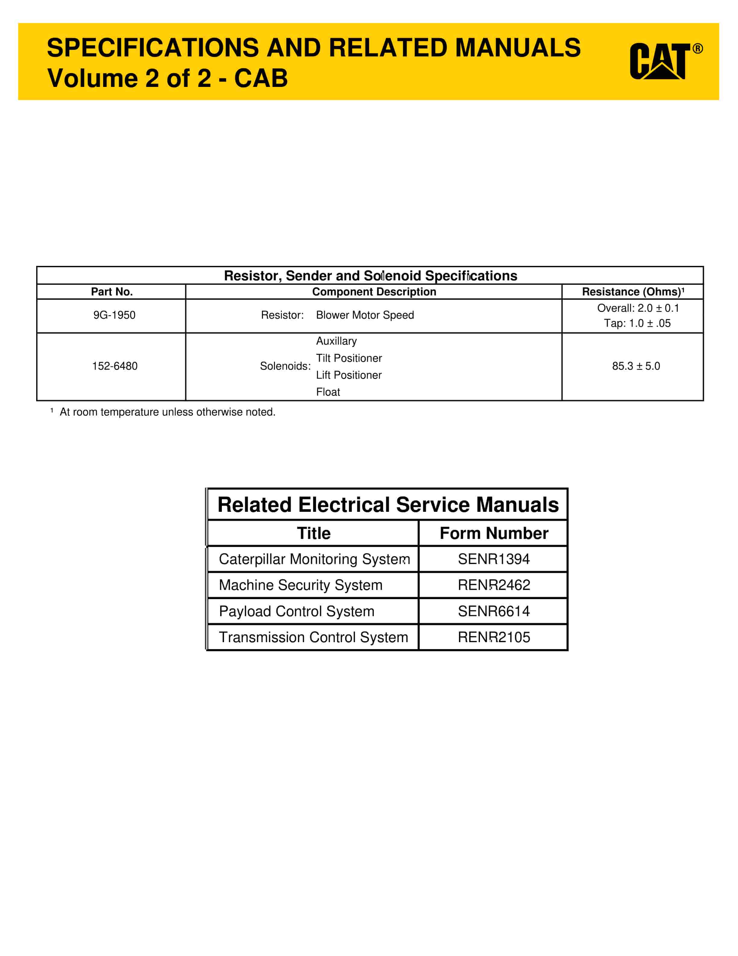 - 3.2.2. Volume 2 of 2 – Cab