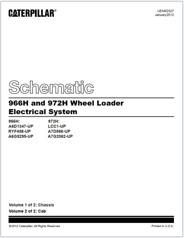 Caterpillar 966H, 972H Wheel Loader Electrical System Schematic UENR2527